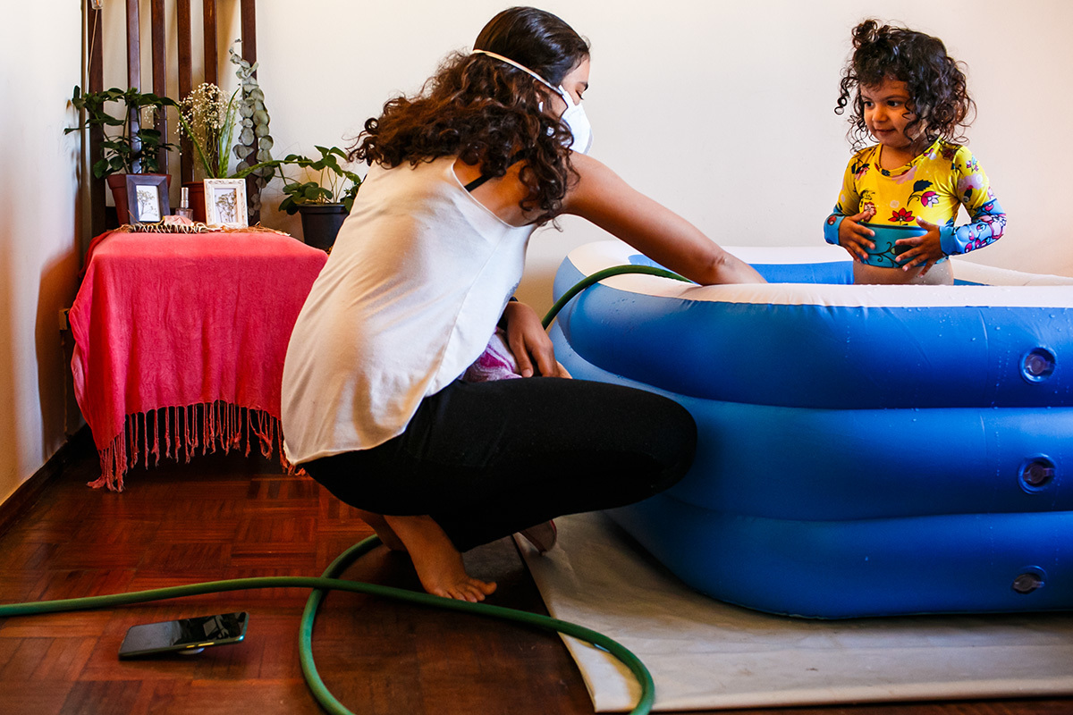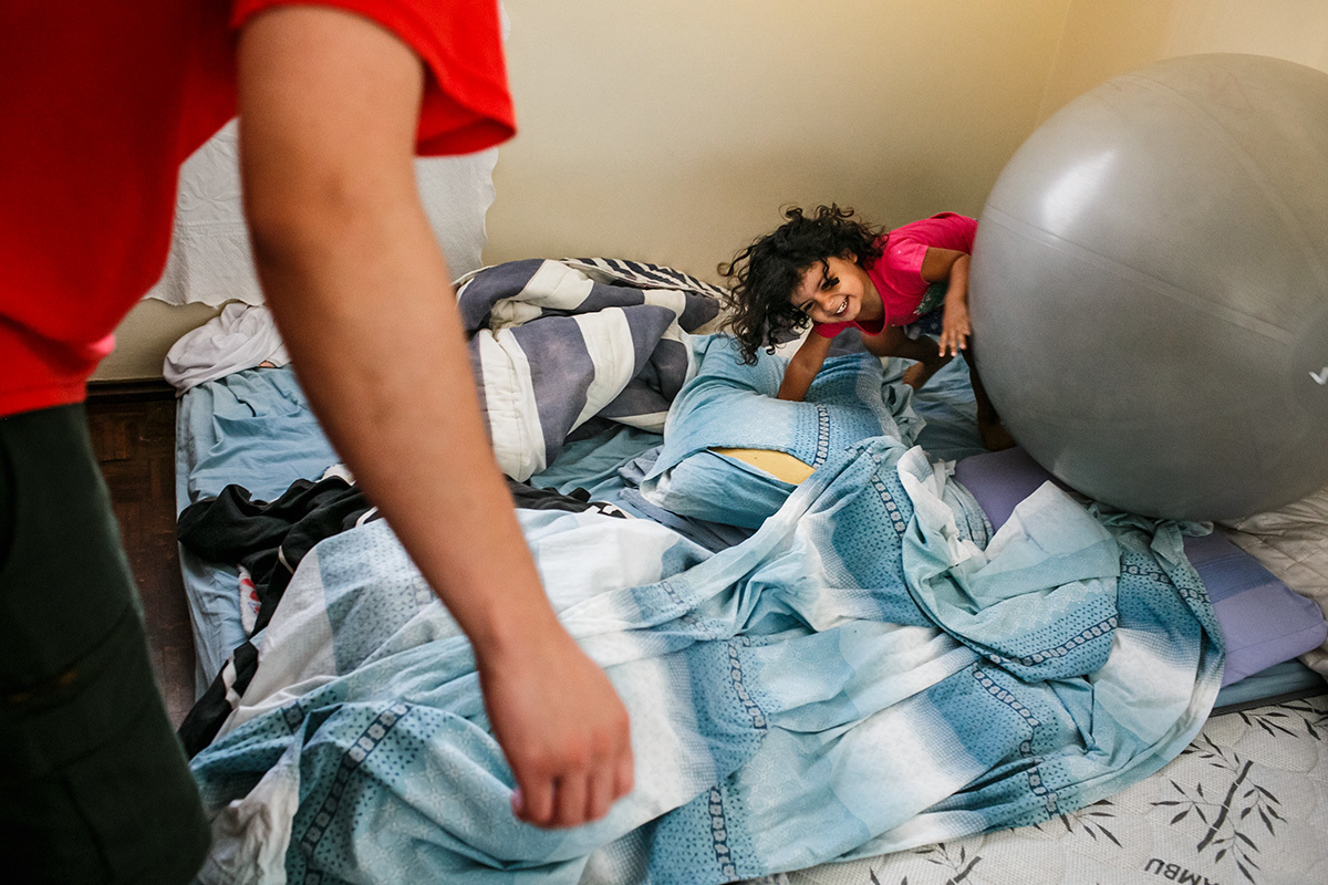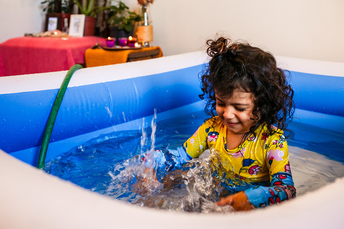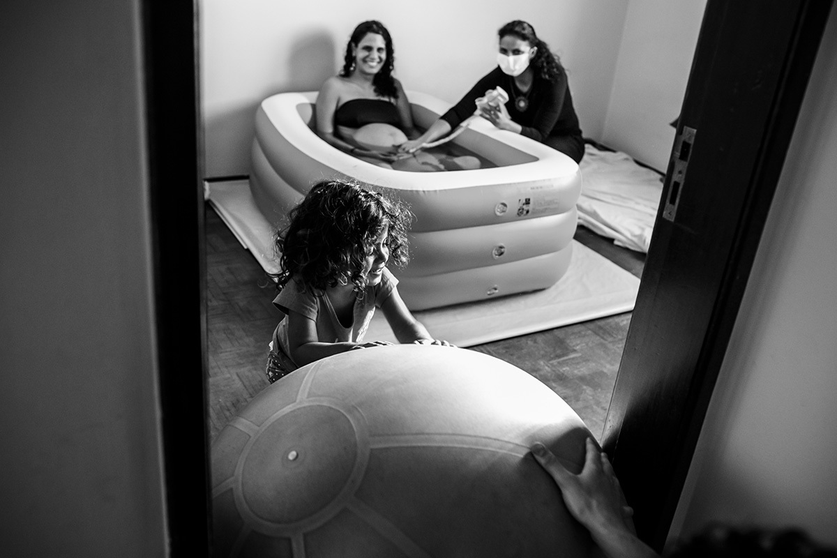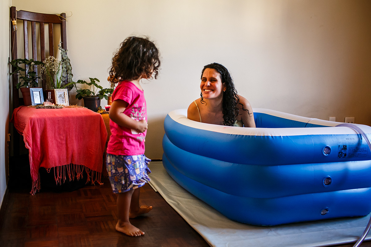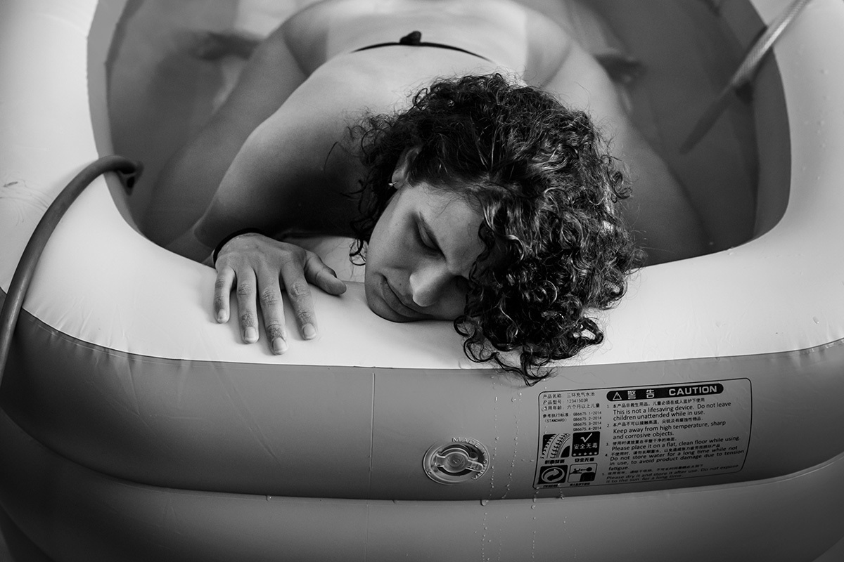 O acalento para o seu conforto físico encontrou na água, revezando entre o chuveiro e a banheira. Sua introspecção era tanta que não requisitou massagens ou outras formas de alívio, bastava saber com a monitoração da auscultação que seu bebê estava bem e que sua filha estava bem.