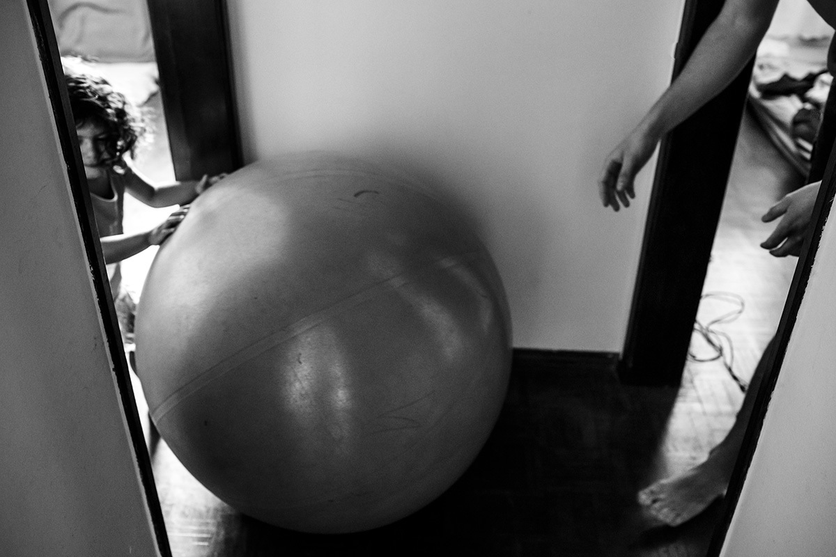 Encarava os ciclos de contração, literalmente como um rito de passagem. A cada contração que vinha vocalizava, hora parada, hora se movimentando, acolhendo com respeito o processo e sempre que passava ou vinha um sorriso em seu rosto ou um semblante de paz. Uma aceitação de que a cada um desses passos seu filho estaria mais próximo.