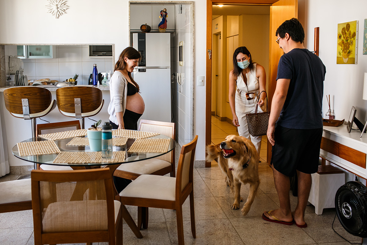 E foi assim no acompanhamento da Bruna e do João Paulo à espera da Ana, ao lado da sua irmã canina, Zelda, e da sua tia. Escolheram o acompanhamento em casa, lugar que reaprenderam a curtir durante a pandemia. Para quem mal ficava em casa e realizava normalmente as refeições na rua devido ao ritmo intenso de trabalho, aprenderam a se reorganizar numa nova rotina, dentro do seu cantinho, e a ter as refeições com muito mais prazer. E durante essa reorganização a Ana chegou trazendo mais alegria para suas vidas. Então, para eles, essa simplicidade do dia a dia, era o que mais os representava neste momento e o que queriam ter como lembrança.