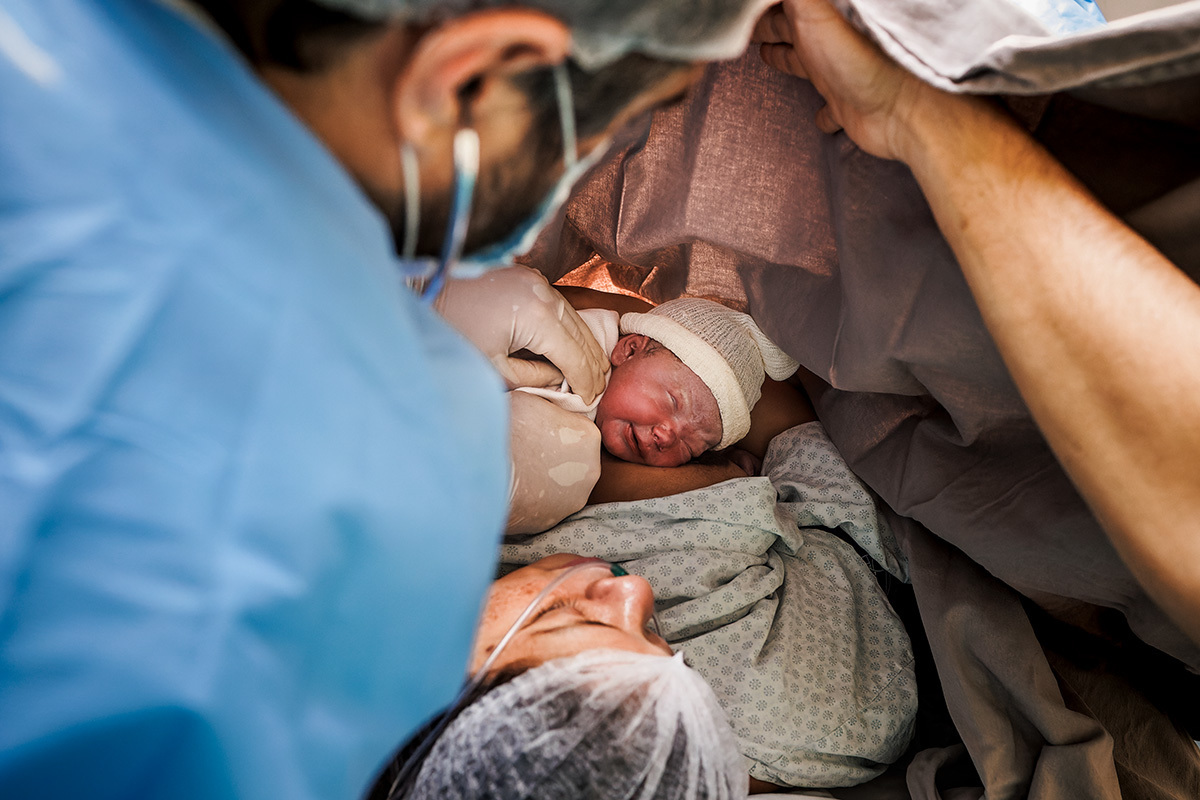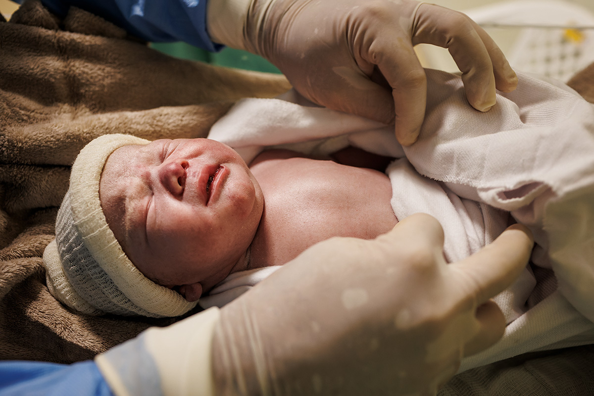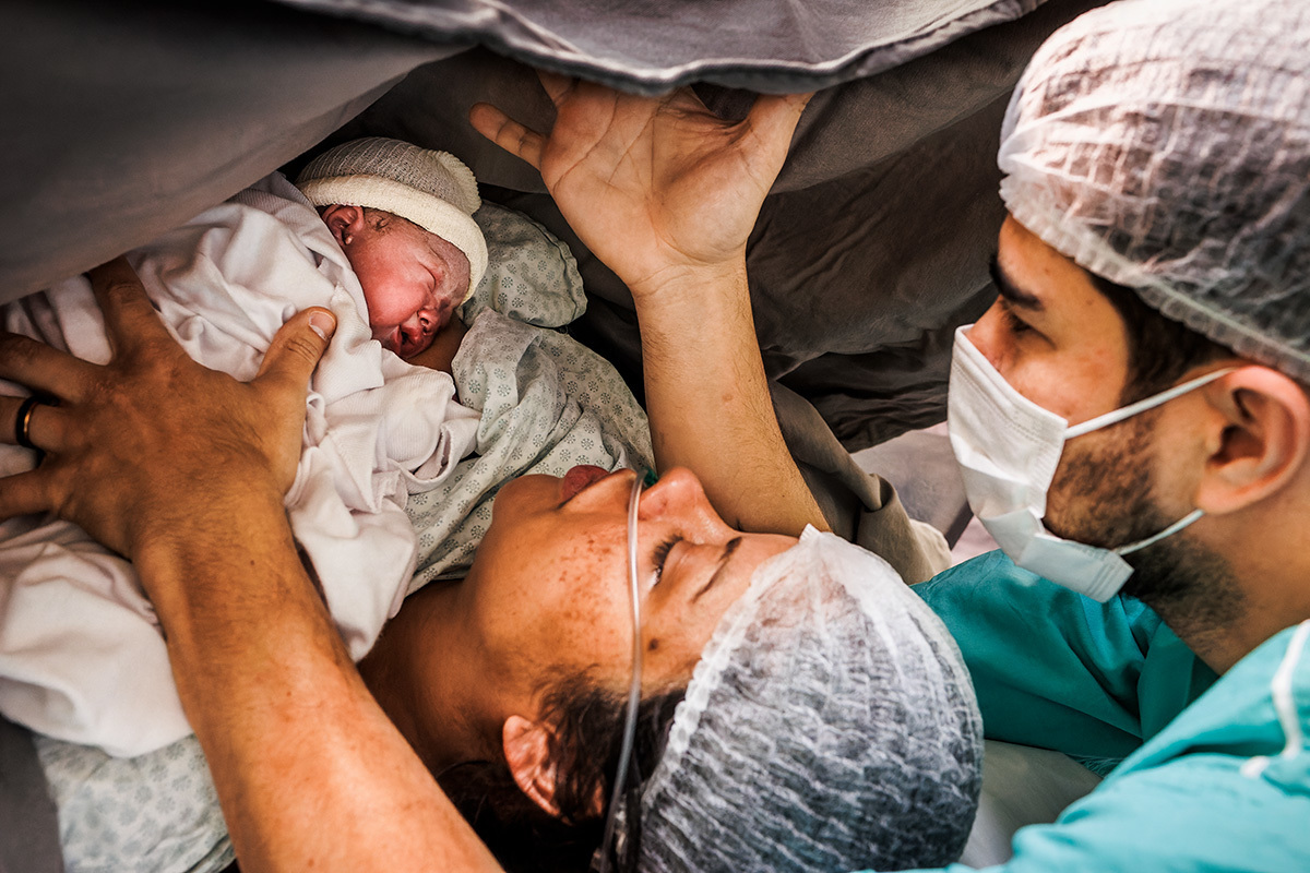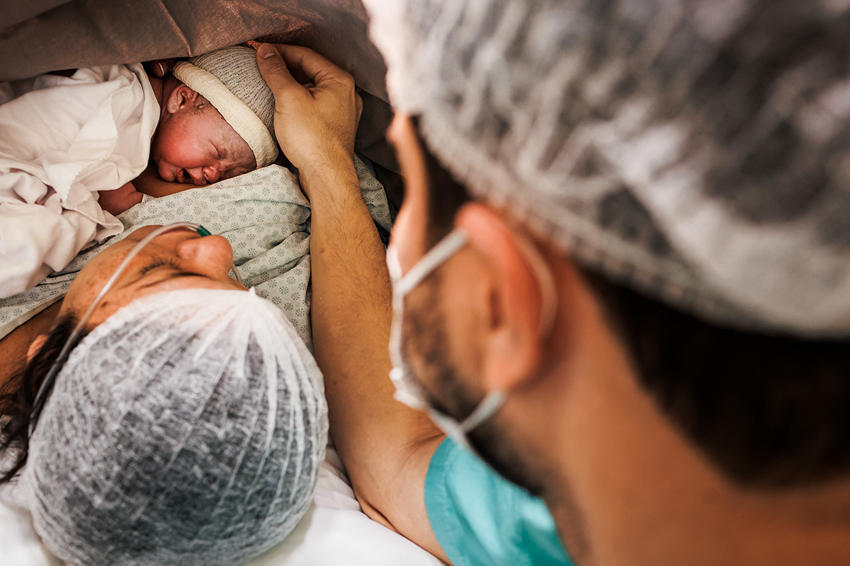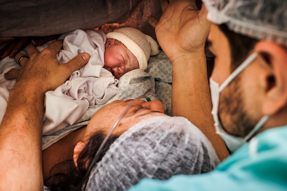 Ela desejava imagens somente do parto. A maternidade me permitiu começar a acompanhá-los quando o Francisco já estava quase sendo recebido. Pude ver a emoção dos dois ao conhecer o filho tão amado e esperado. Francisco, logo em seguida, teve que receber cuidados especiais devido a uma dificuldade respiratória. Eles pelo menos puderam desfrutar de um breve, mas lindo contato pele a pele. Um tempo curto, mas infinito ao mesmo tempo. O tempo de ter o filho pela primeira vez nos braços para se conhecerem e se sentirem. Um tempo importante para a Tata, mesmo se sentindo um pouco indisposta logo após o nascimento.
