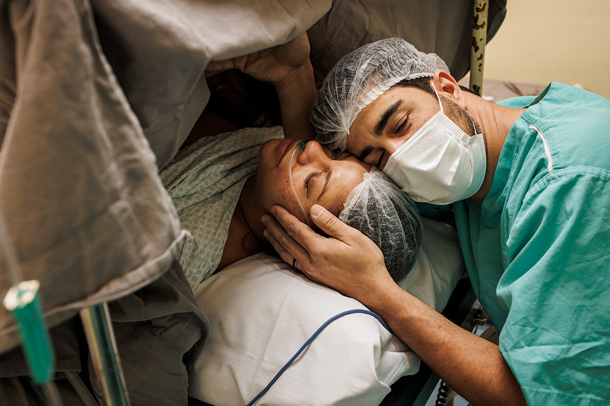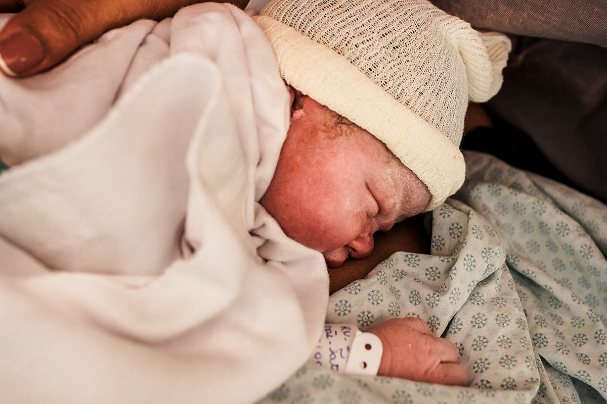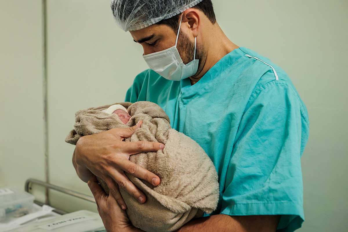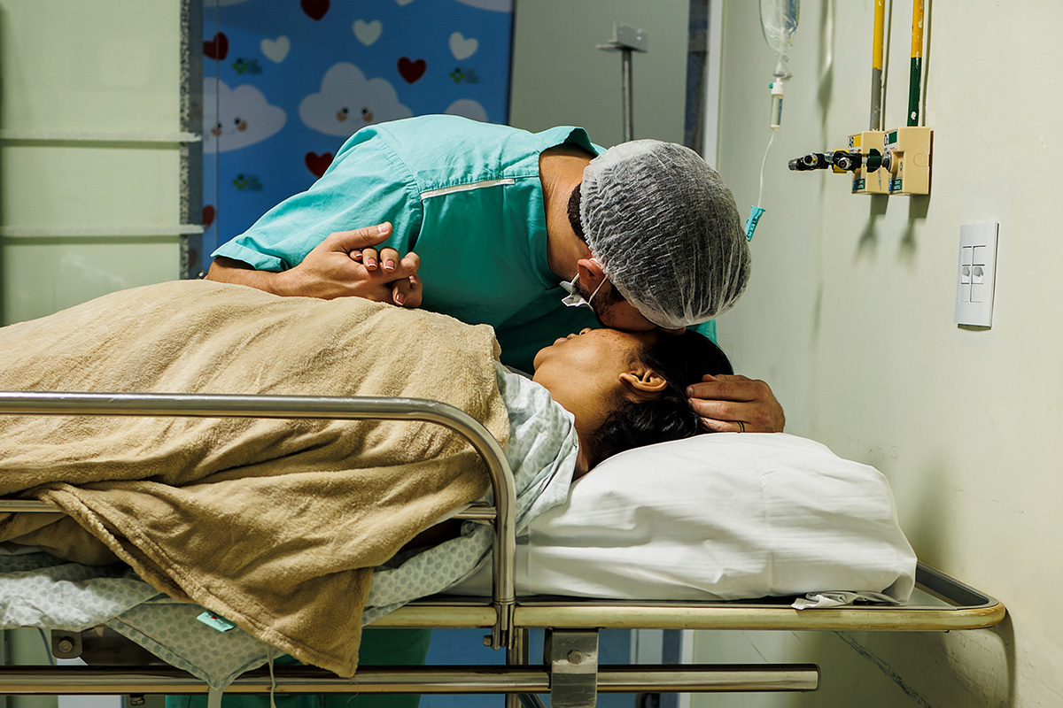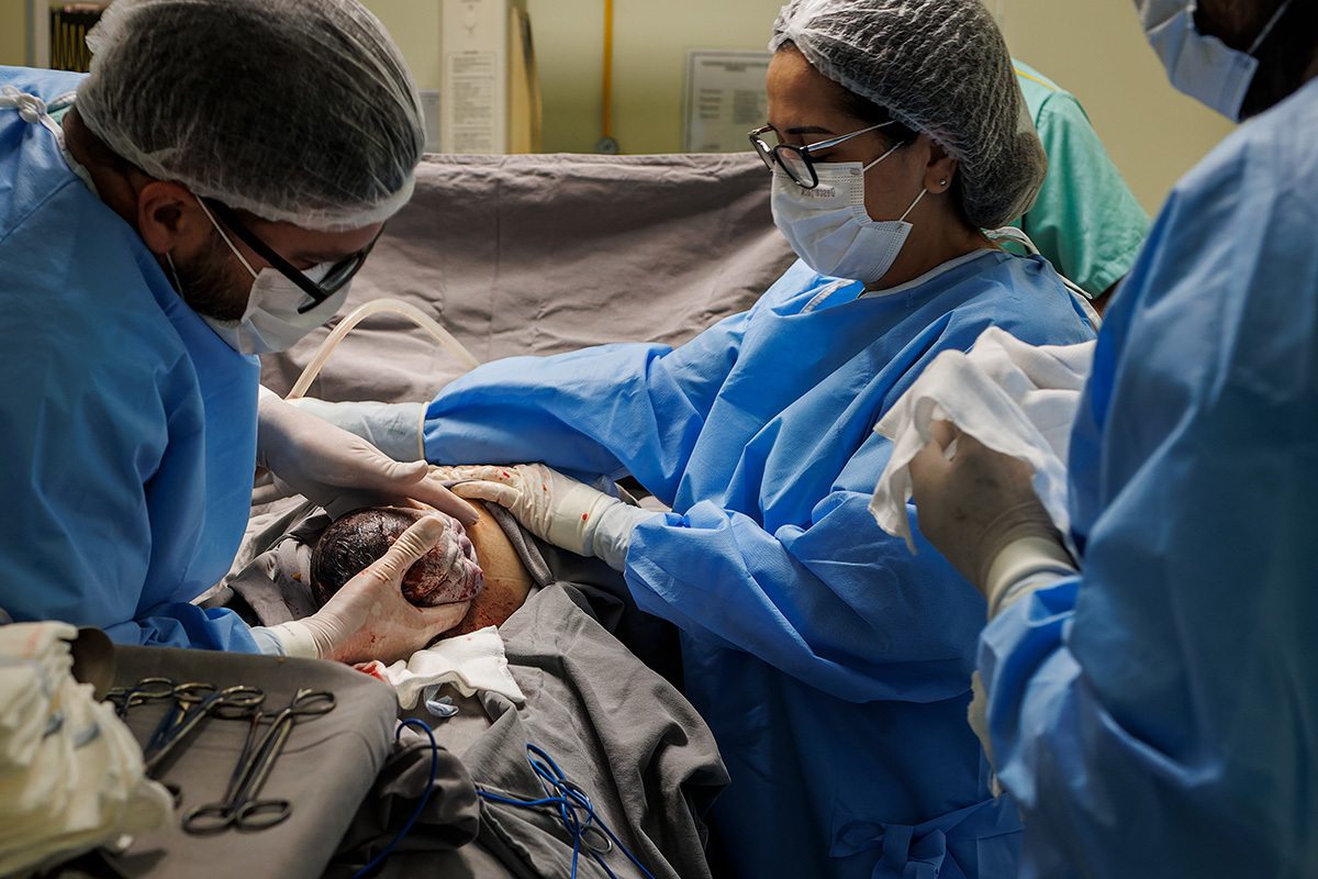 Ela desejava imagens somente do parto. A maternidade me permitiu começar a acompanhá-los quando o Francisco já estava quase sendo recebido. Pude ver a emoção dos dois ao conhecer o filho tão amado e esperado. Francisco, logo em seguida, teve que receber cuidados especiais devido a uma dificuldade respiratória. Eles pelo menos puderam desfrutar de um breve, mas lindo contato pele a pele. Um tempo curto, mas infinito ao mesmo tempo. O tempo de ter o filho pela primeira vez nos braços para se conhecerem e se sentirem. Um tempo importante para a Tata, mesmo se sentindo um pouco indisposta logo após o nascimento.
