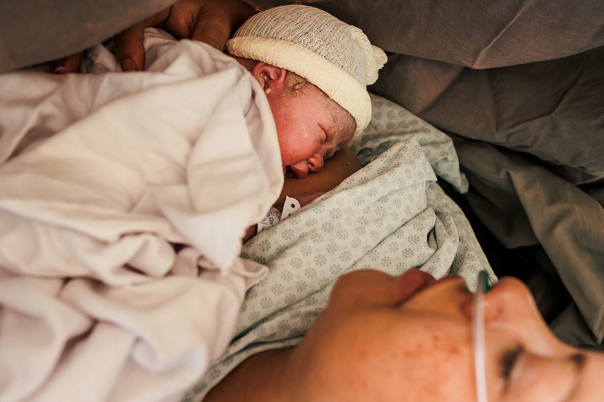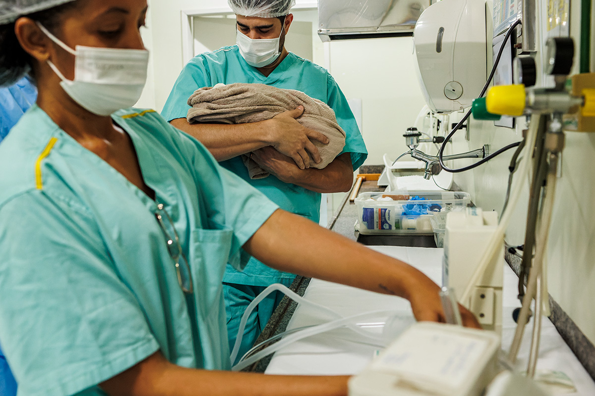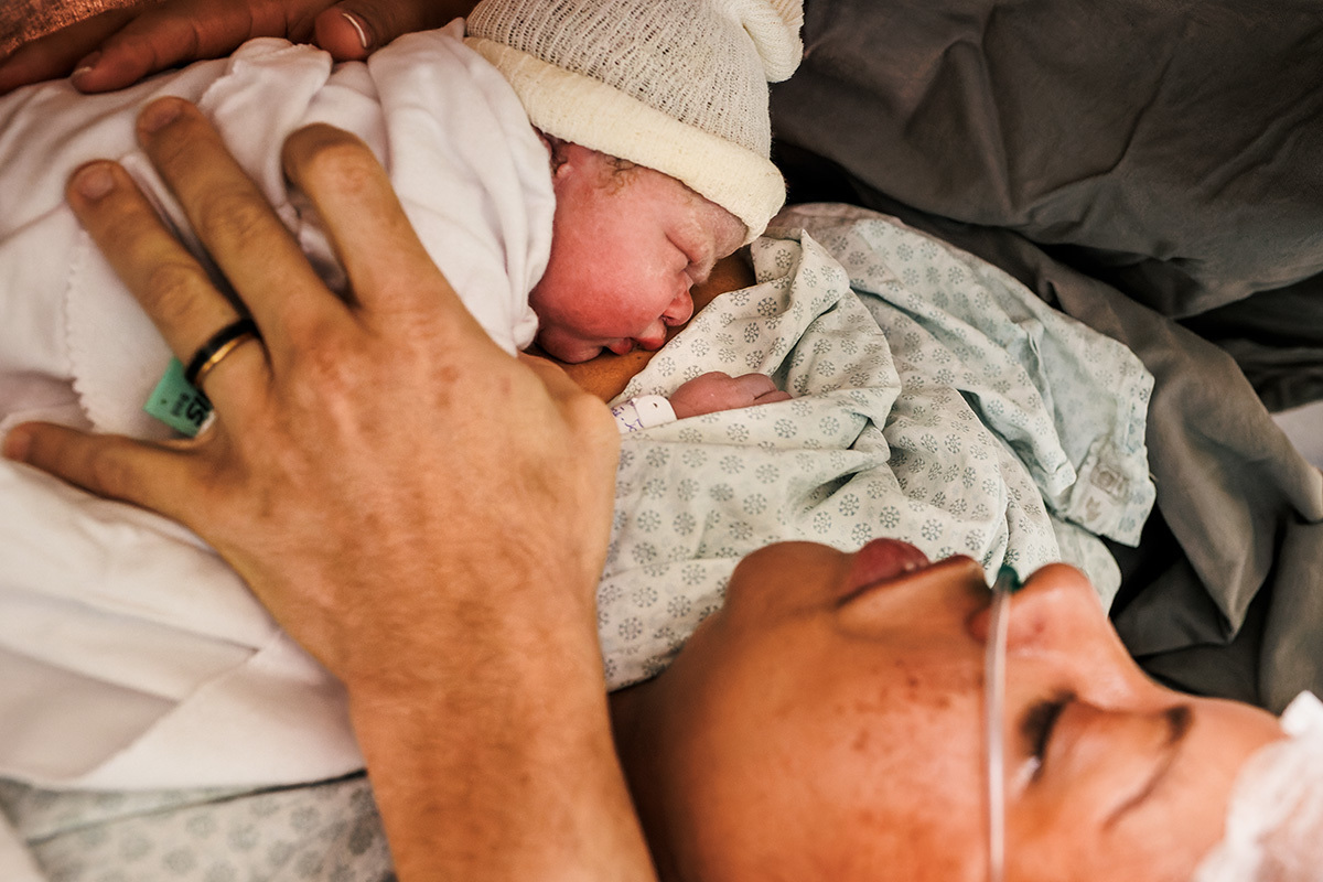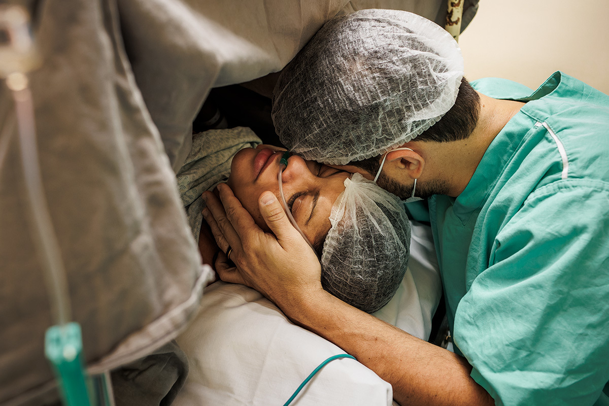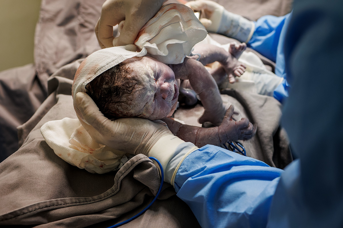 Ela desejava imagens somente do parto. A maternidade me permitiu começar a acompanhá-los quando o Francisco já estava quase sendo recebido. Pude ver a emoção dos dois ao conhecer o filho tão amado e esperado. Francisco, logo em seguida, teve que receber cuidados especiais devido a uma dificuldade respiratória. Eles pelo menos puderam desfrutar de um breve, mas lindo contato pele a pele. Um tempo curto, mas infinito ao mesmo tempo. O tempo de ter o filho pela primeira vez nos braços para se conhecerem e se sentirem. Um tempo importante para a Tata, mesmo se sentindo um pouco indisposta logo após o nascimento.