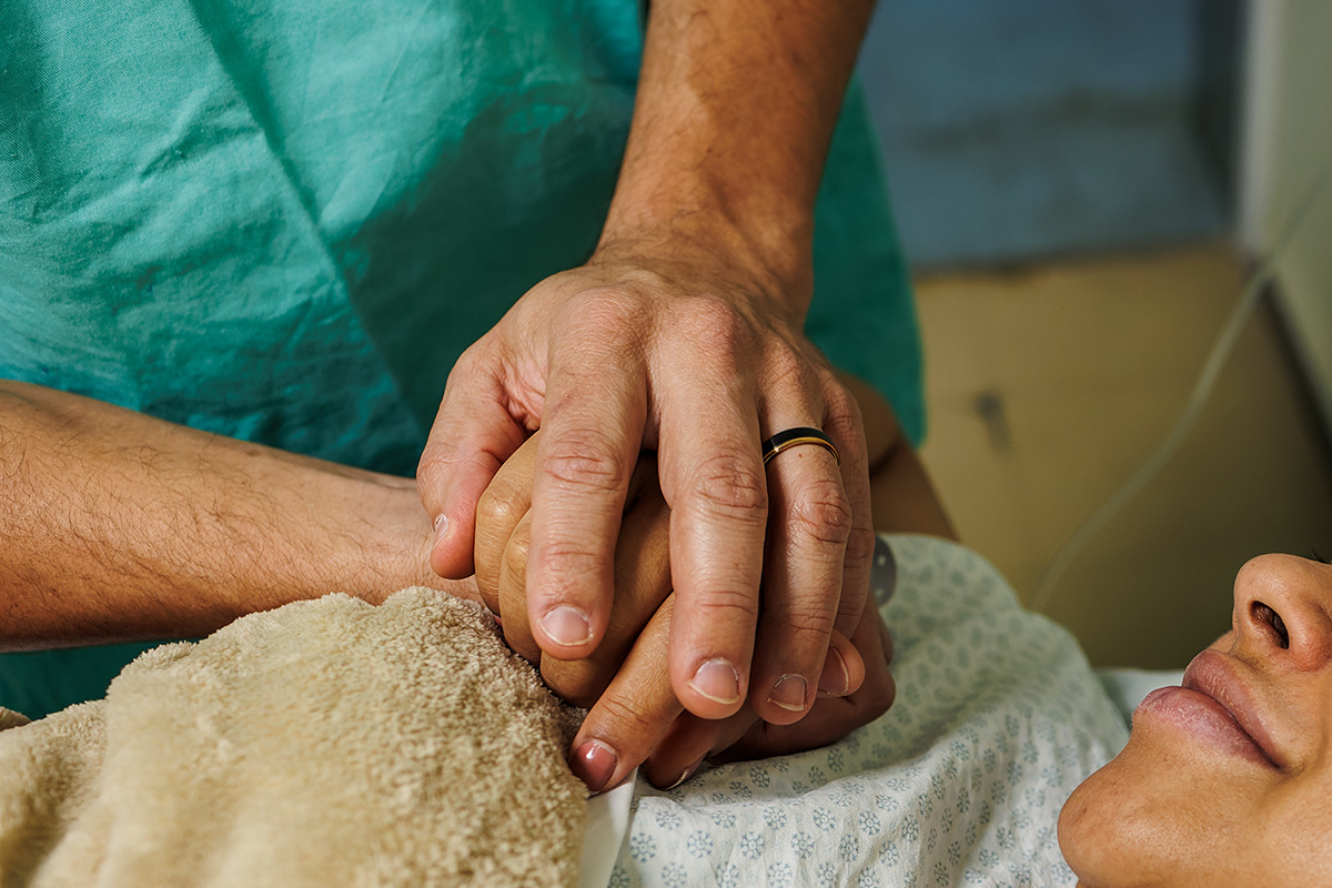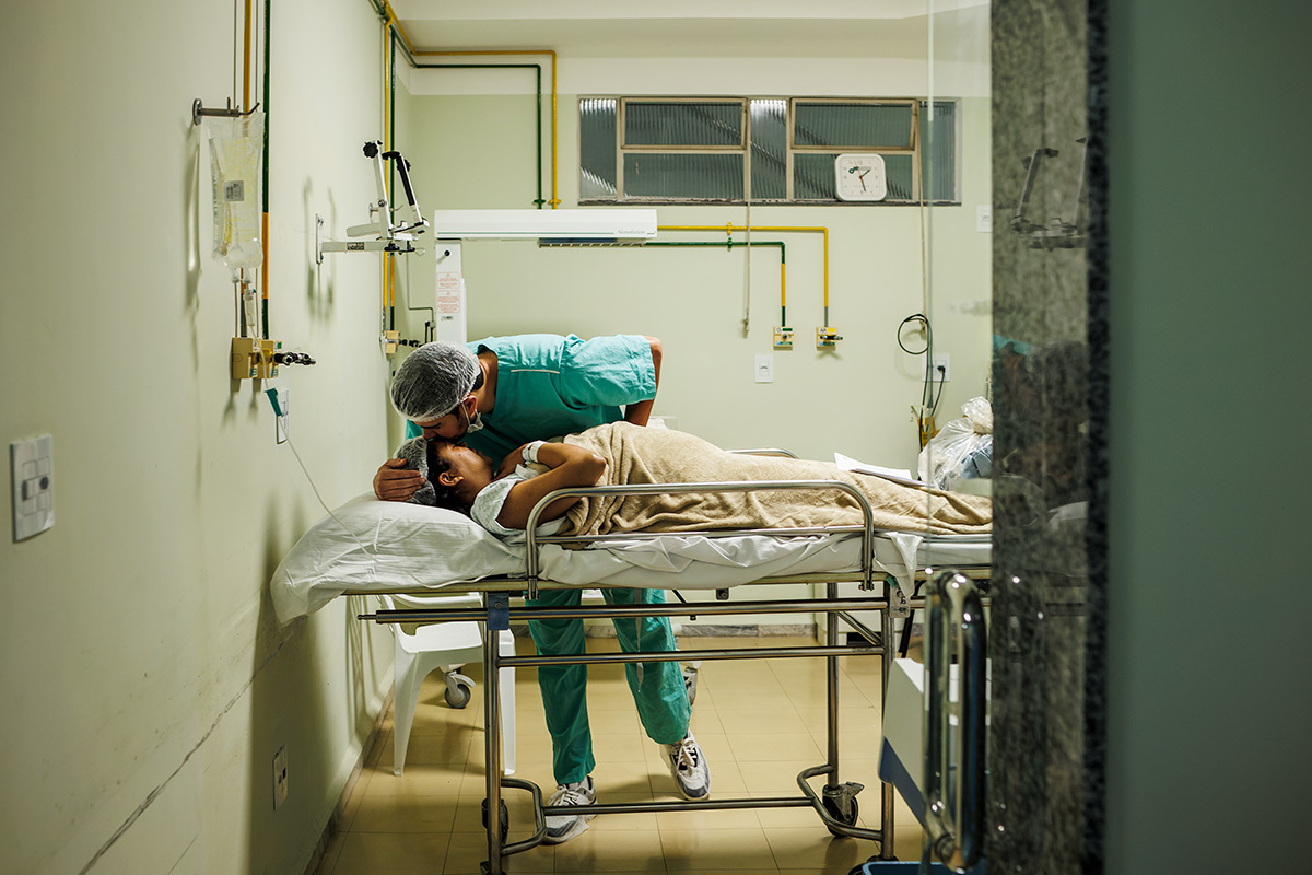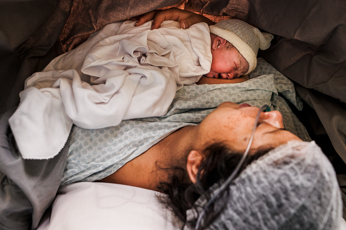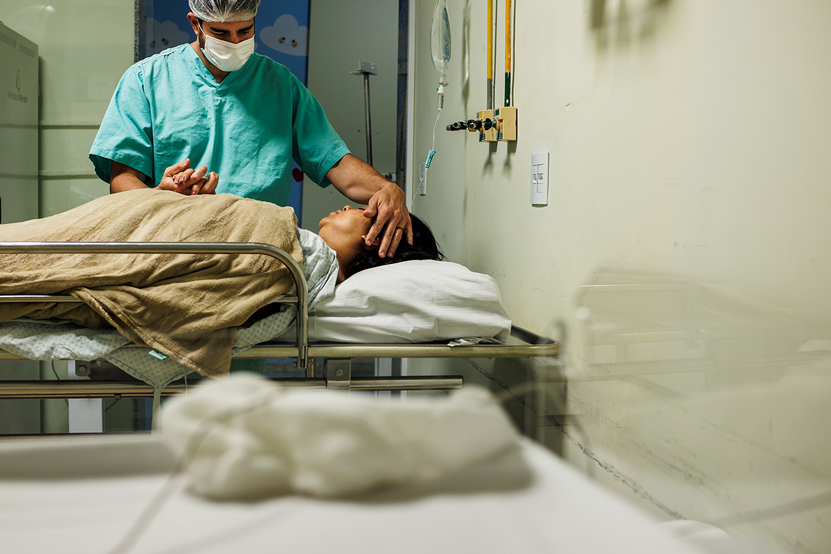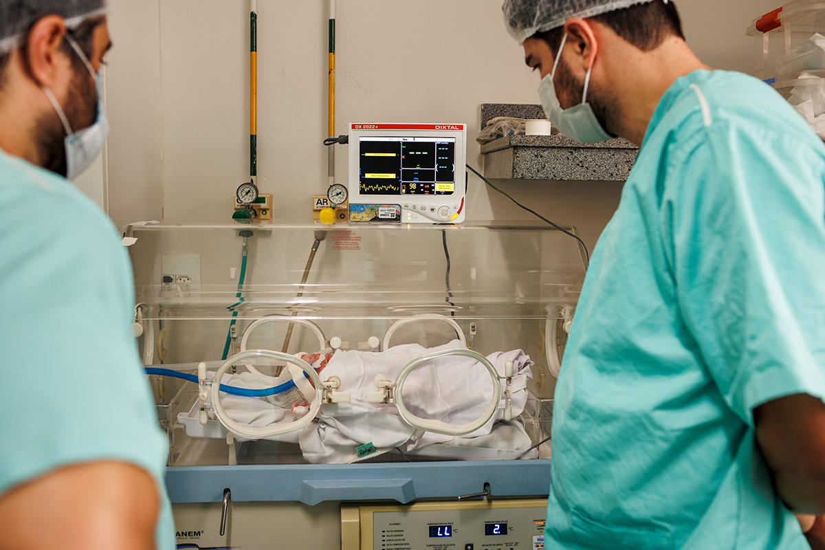 Ela desejava imagens somente do parto. A maternidade me permitiu começar a acompanhá-los quando o Francisco já estava quase sendo recebido. Pude ver a emoção dos dois ao conhecer o filho tão amado e esperado. Francisco, logo em seguida, teve que receber cuidados especiais devido a uma dificuldade respiratória. Eles pelo menos puderam desfrutar de um breve, mas lindo contato pele a pele. Um tempo curto, mas infinito ao mesmo tempo. O tempo de ter o filho pela primeira vez nos braços para se conhecerem e se sentirem. Um tempo importante para a Tata, mesmo se sentindo um pouco indisposta logo após o nascimento.