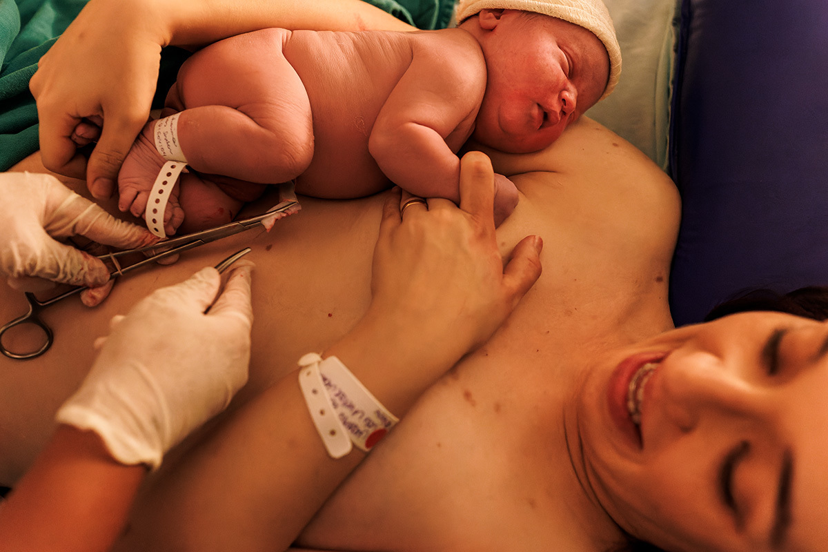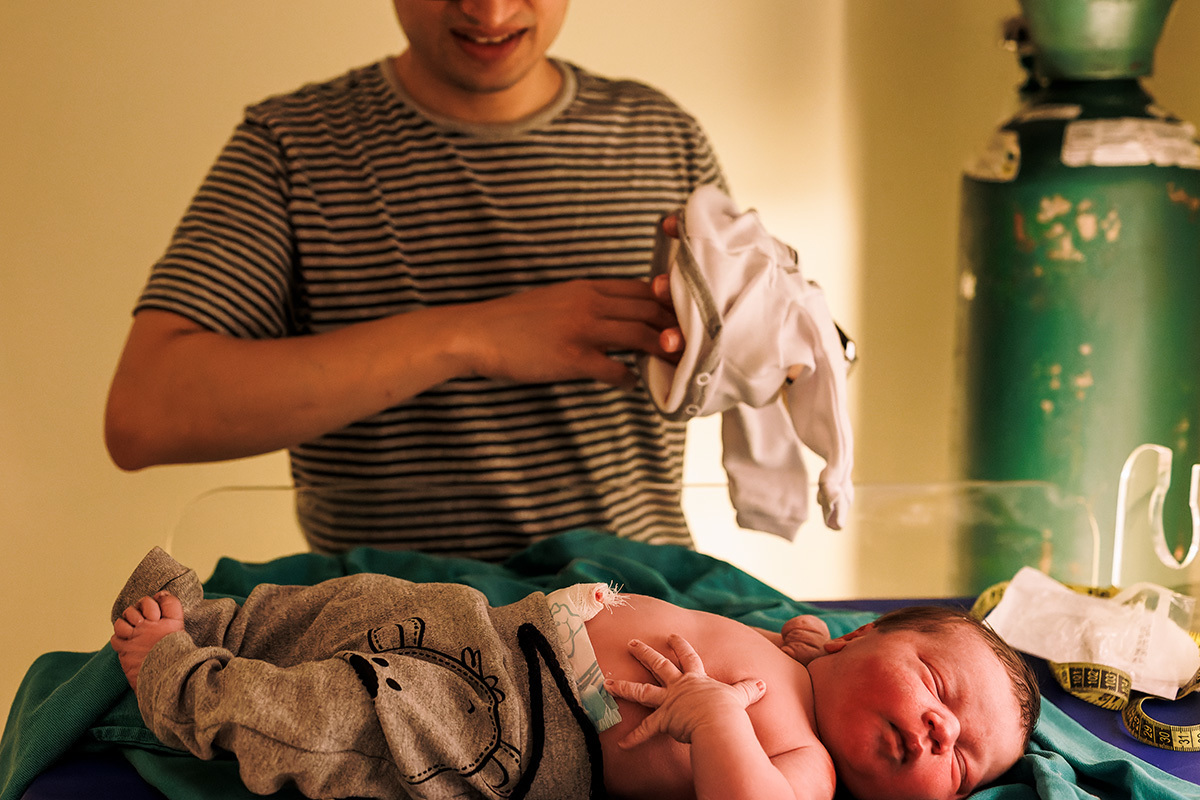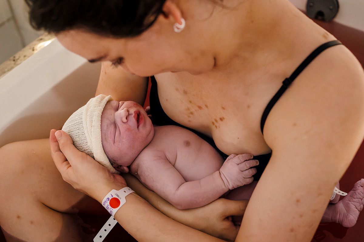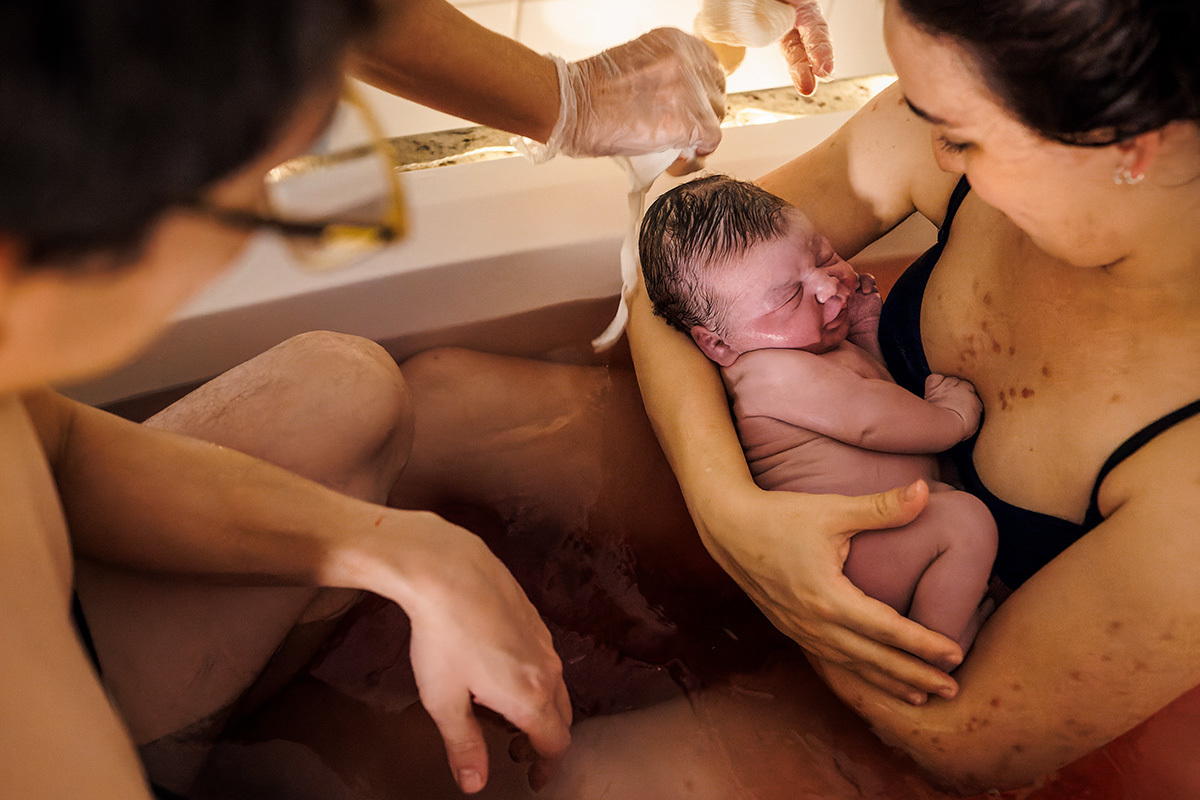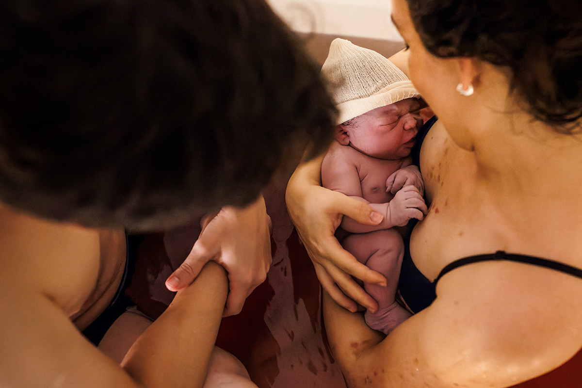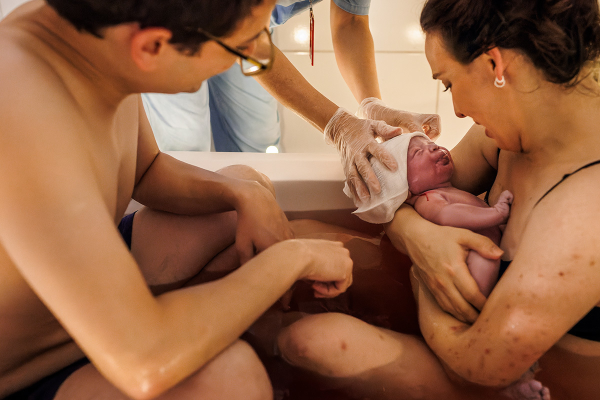 Comecei a acompanhá-los ainda em casa um pouquinho antes de saírem para a maternidade, onde a Marina quis permanecer o máximo que podia. Lá, pôde ficar ao lado do filho e de sua mãe, e contou com a assistência da enfermeira obstetra, Gabrielle, e da sua doula, Gizeli. Ela estava tão tranquila que quando partimos para a maternidade, já com 9 cm de dilatação, era só sorrisos entre as ondas de contrações, as quais as contornava com uma respiração lenta e profunda.