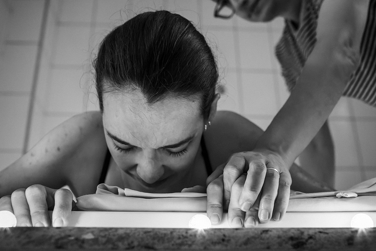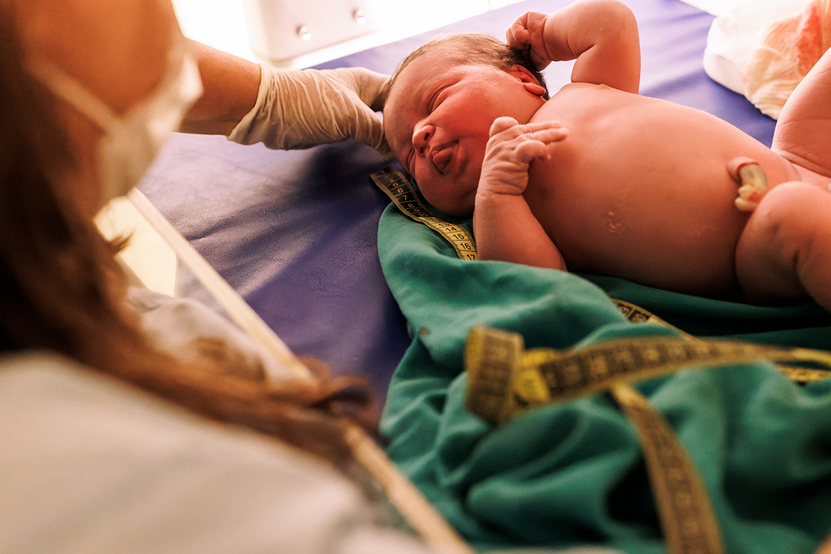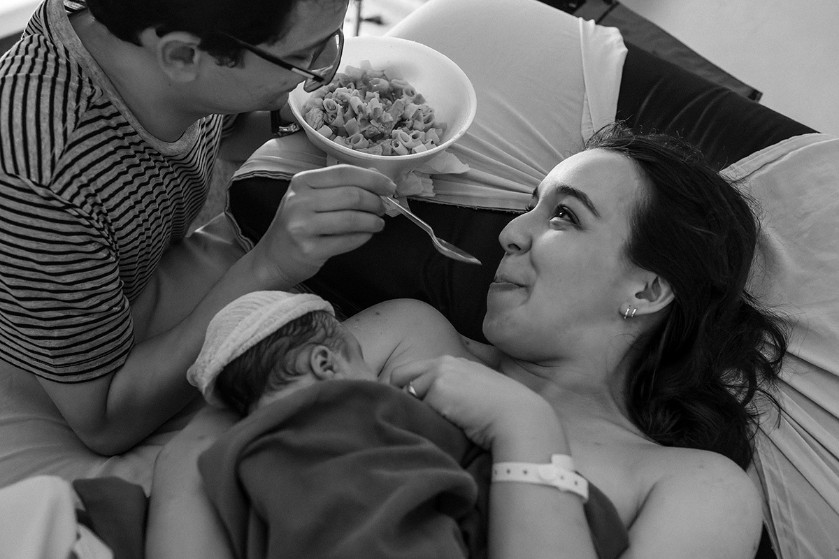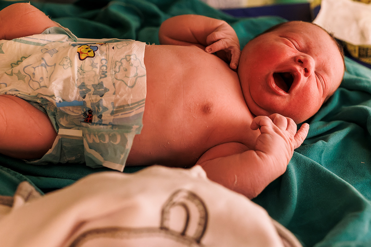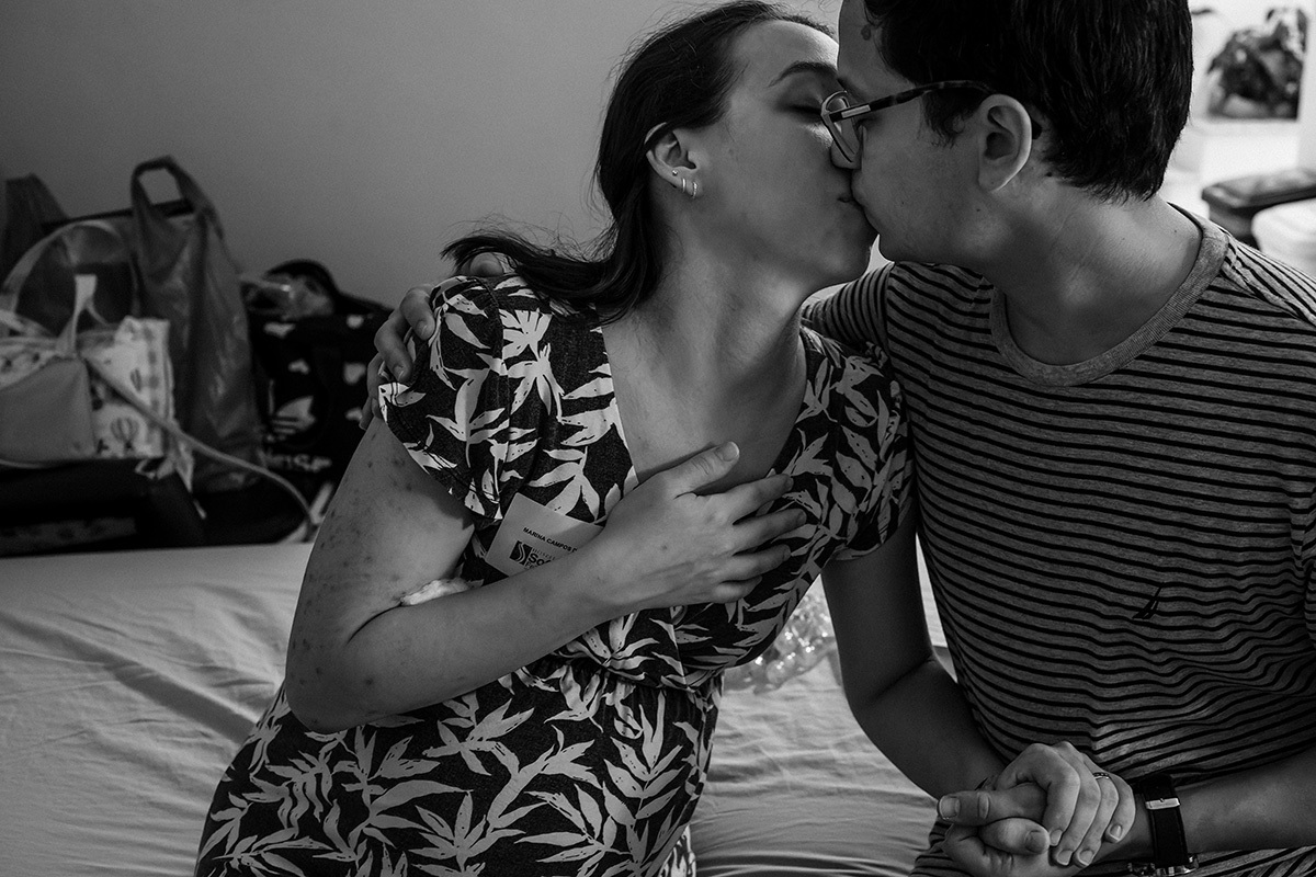 Comecei a acompanhá-los ainda em casa um pouquinho antes de saírem para a maternidade, onde a Marina quis permanecer o máximo que podia. Lá, pôde ficar ao lado do filho e de sua mãe, e contou com a assistência da enfermeira obstetra, Gabrielle, e da sua doula, Gizeli. Ela estava tão tranquila que quando partimos para a maternidade, já com 9 cm de dilatação, era só sorrisos entre as ondas de contrações, as quais as contornava com uma respiração lenta e profunda.