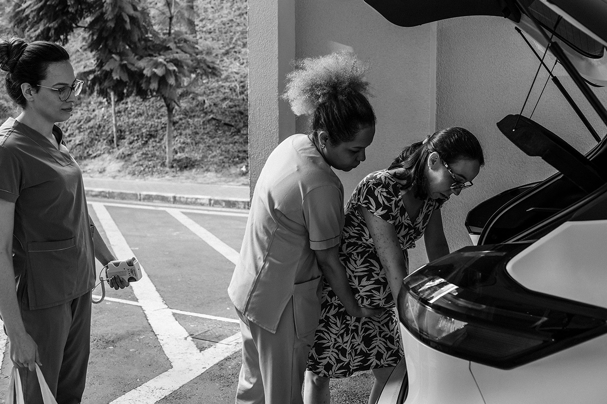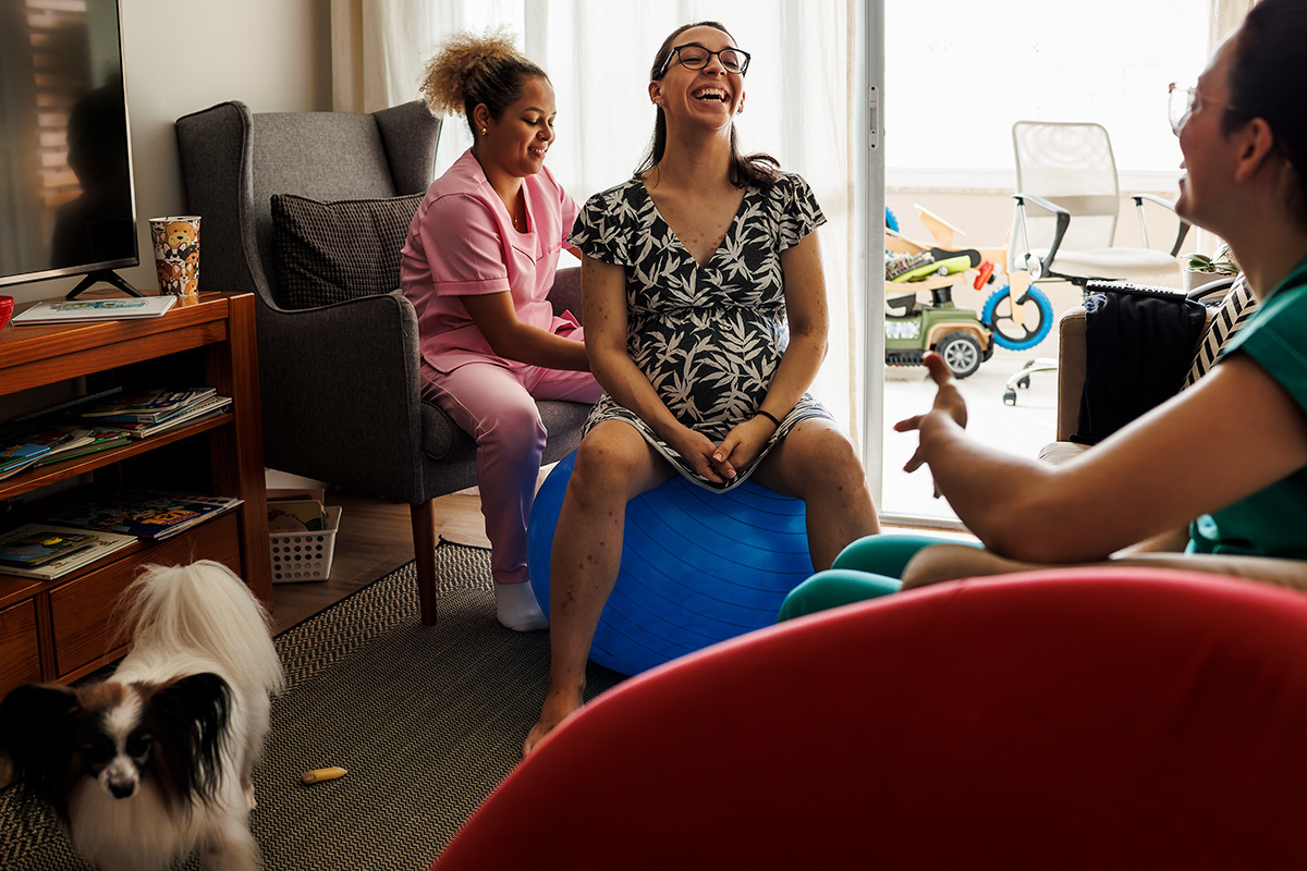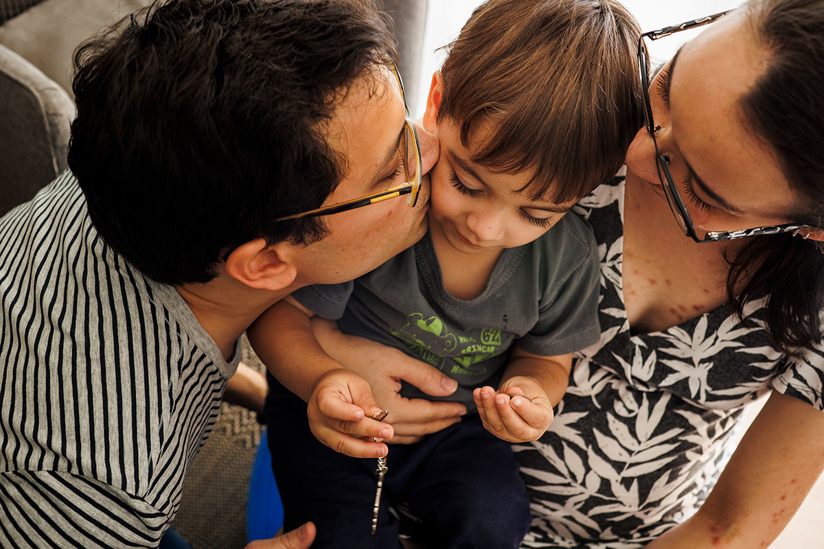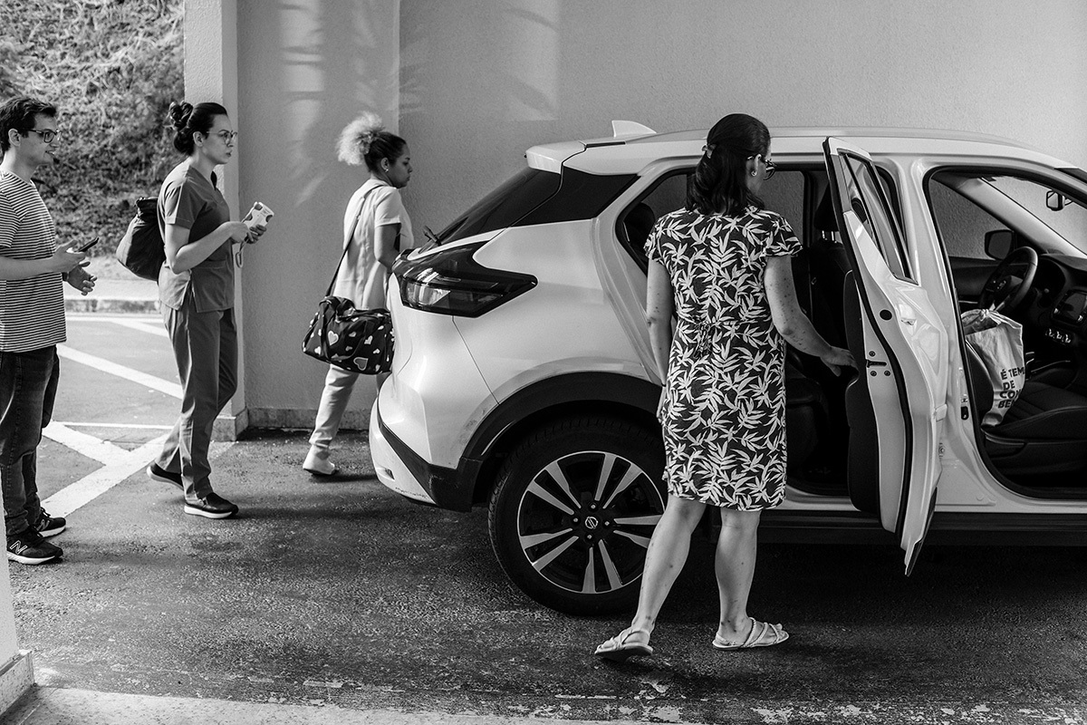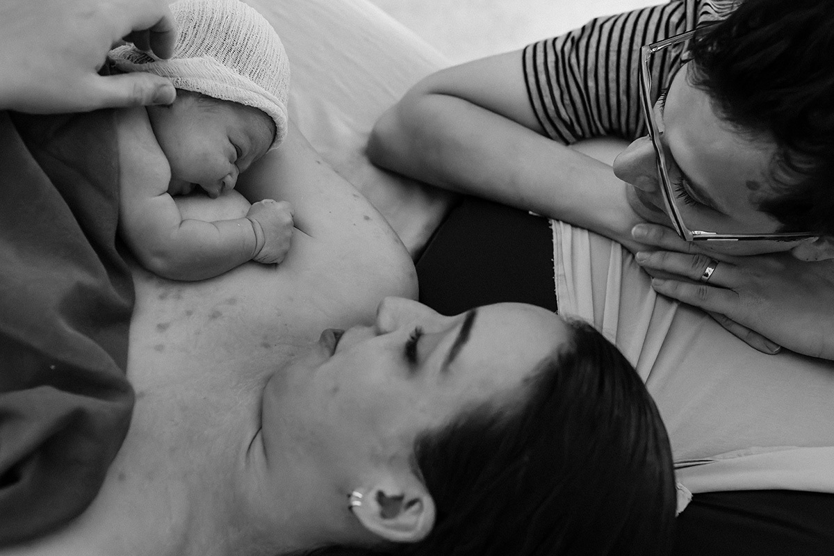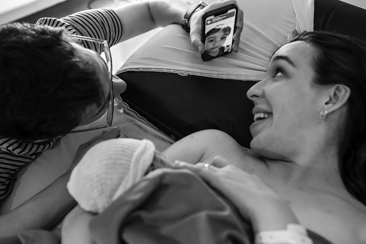 Comecei a acompanhá-los ainda em casa um pouquinho antes de saírem para a maternidade, onde a Marina quis permanecer o máximo que podia. Lá, pôde ficar ao lado do filho e de sua mãe, e contou com a assistência da enfermeira obstetra, Gabrielle, e da sua doula, Gizeli. Ela estava tão tranquila que quando partimos para a maternidade, já com 9 cm de dilatação, era só sorrisos entre as ondas de contrações, as quais as contornava com uma respiração lenta e profunda.