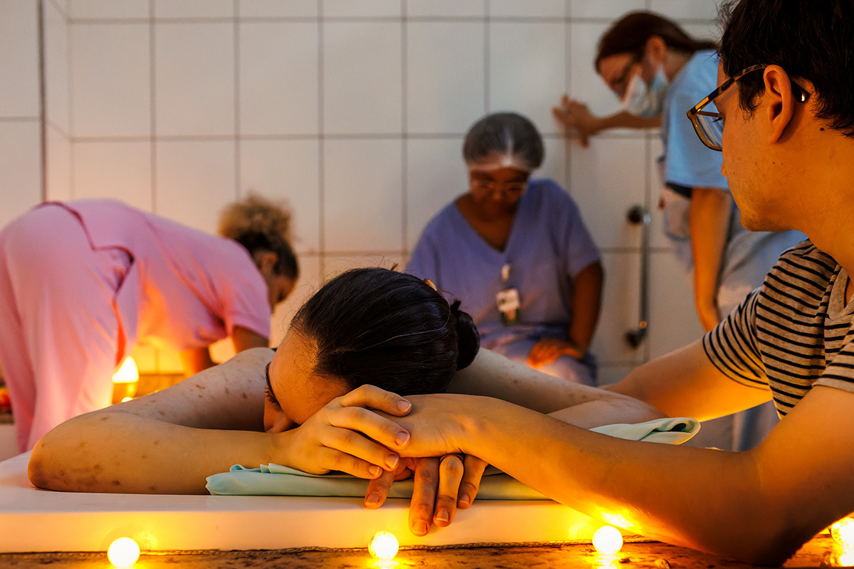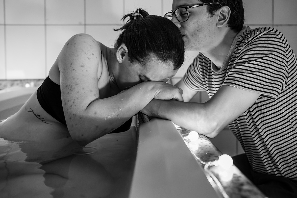 Como no primeiro parto, a tranquilidade, a união do casal, o respeito, o companheirismo, o acreditar e confiar um no outro, com a certeza de que o que precisassem um estaria ali pelo outro, foi inspirador! Foi emocionante ver o olhar entre eles com admiração mútua, cheio de amor, durante todo o processo! As lágrimas vinham não pela dor, mas pela emoção de estar vivenciando esse grande momento com profunda entrega.