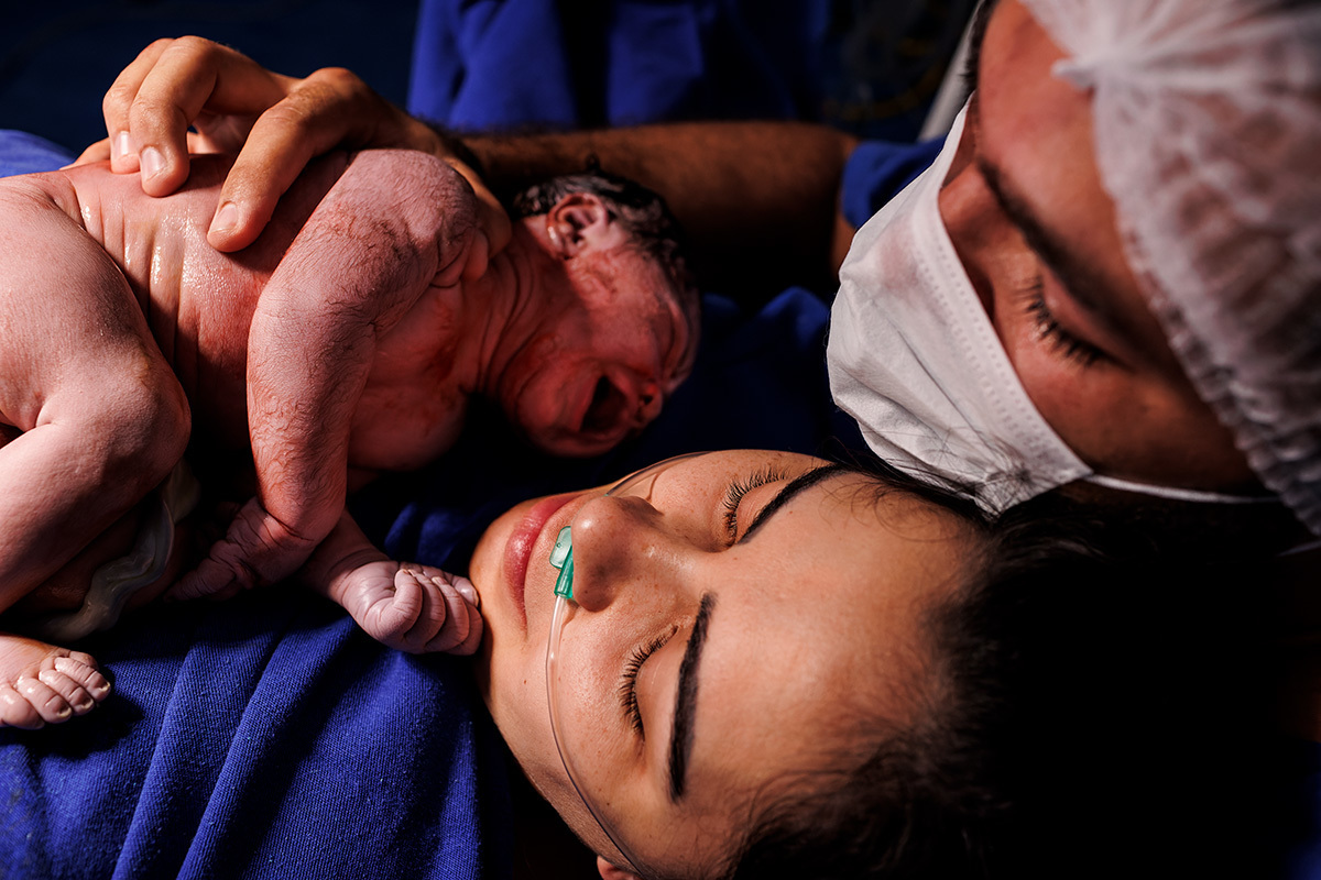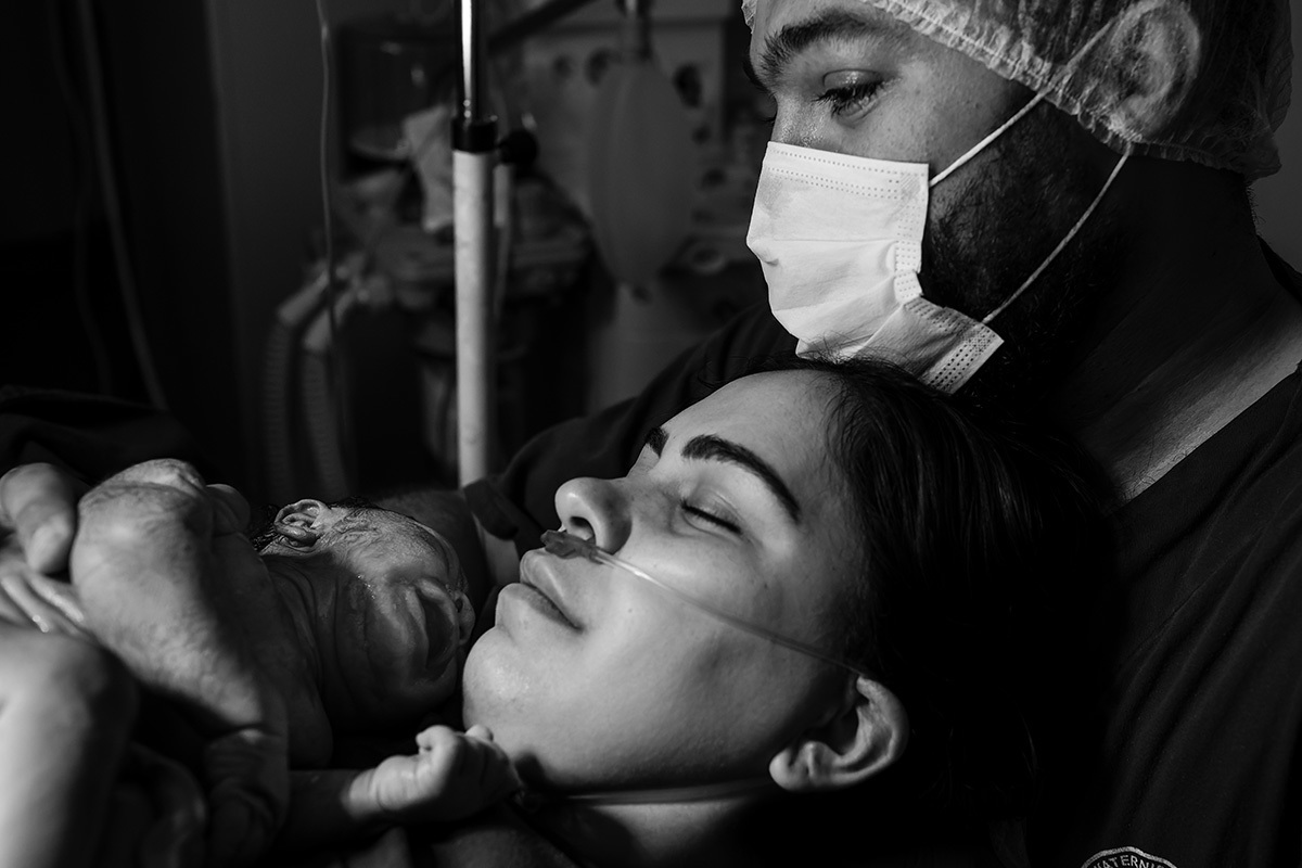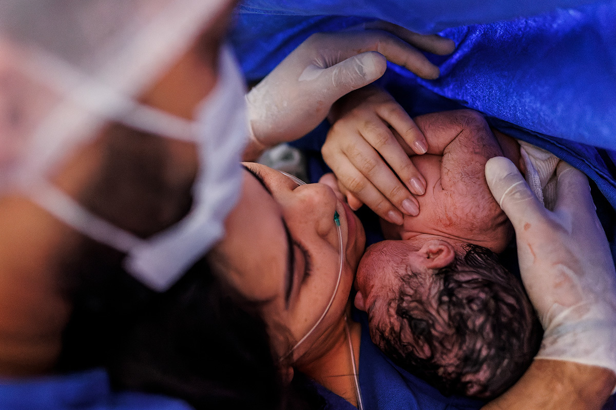 E que bom que tem a ciência para saber quando é necessário intervir! Fer e André passaram juntos e unidos por todo o trabalho de parto, mas os batimentos cardíacos de Álvaro pediram um outro caminho. E assim ele veio, por uma cesárea intraparto, a panos baixos para que seus pais pudessem ver sua chegada!