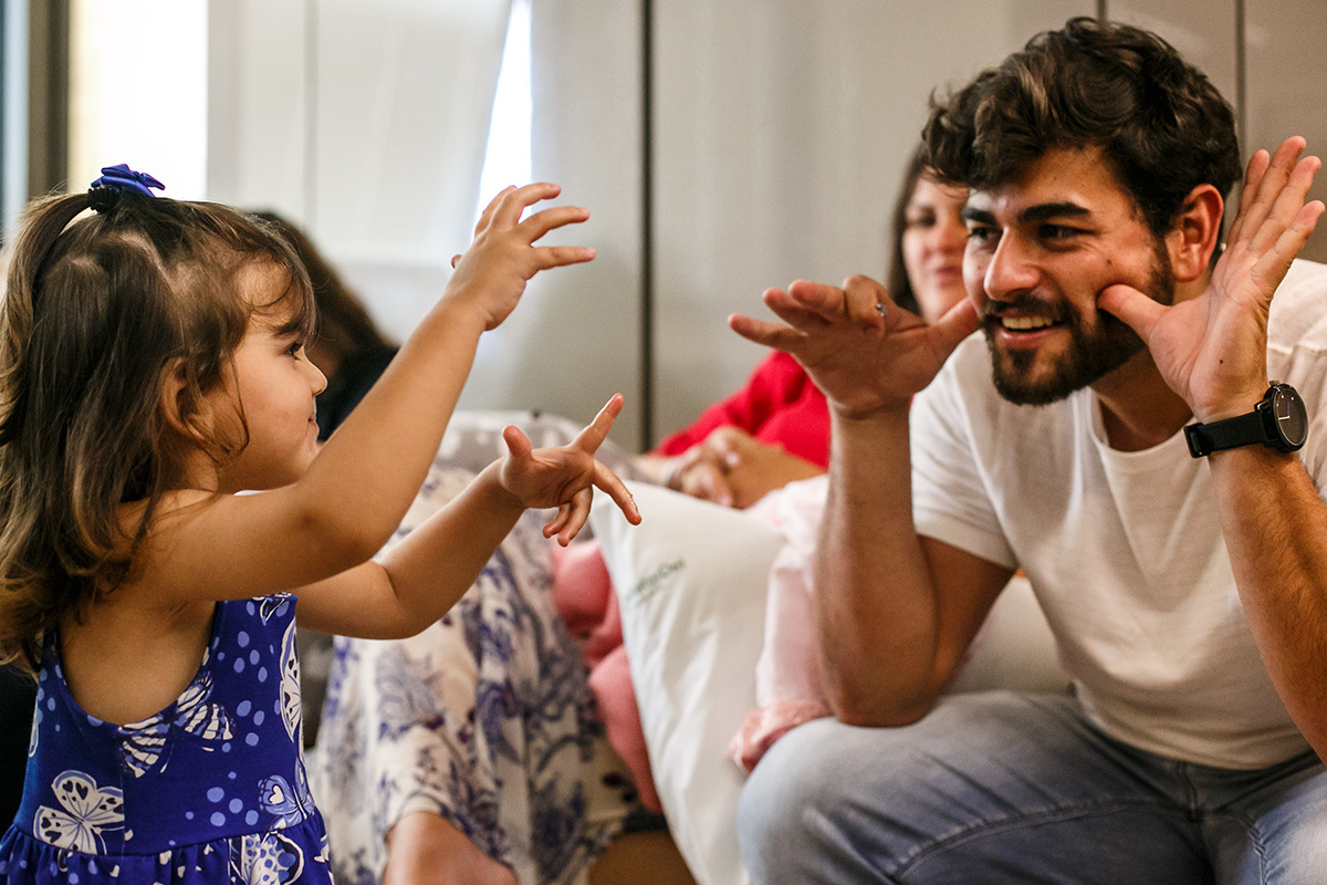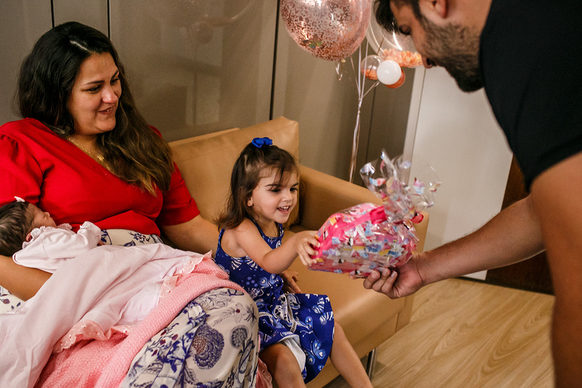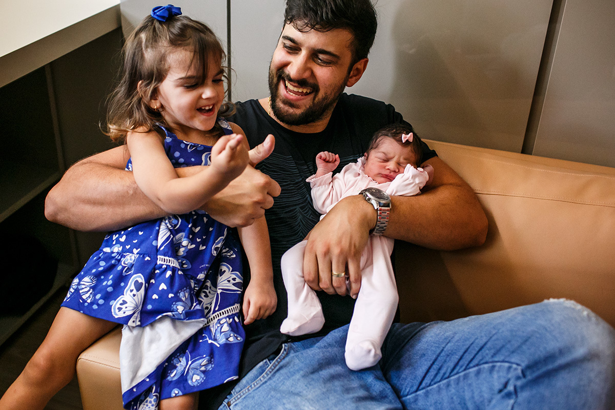 Foi assim com o nascimento da Natália! Seus pais, Anna Marina e Filipe, desejavam que ela nascesse de parto natural como a sua irmãzinha, Heloísa. A data do seu nascimento estava próxima à da irmã e à do pai, e ela acabou escolhendo para nascer no mesmo dia do aniversário do pai, de parto natural como almejavam! Um super presente para esse pai tão afetuoso!