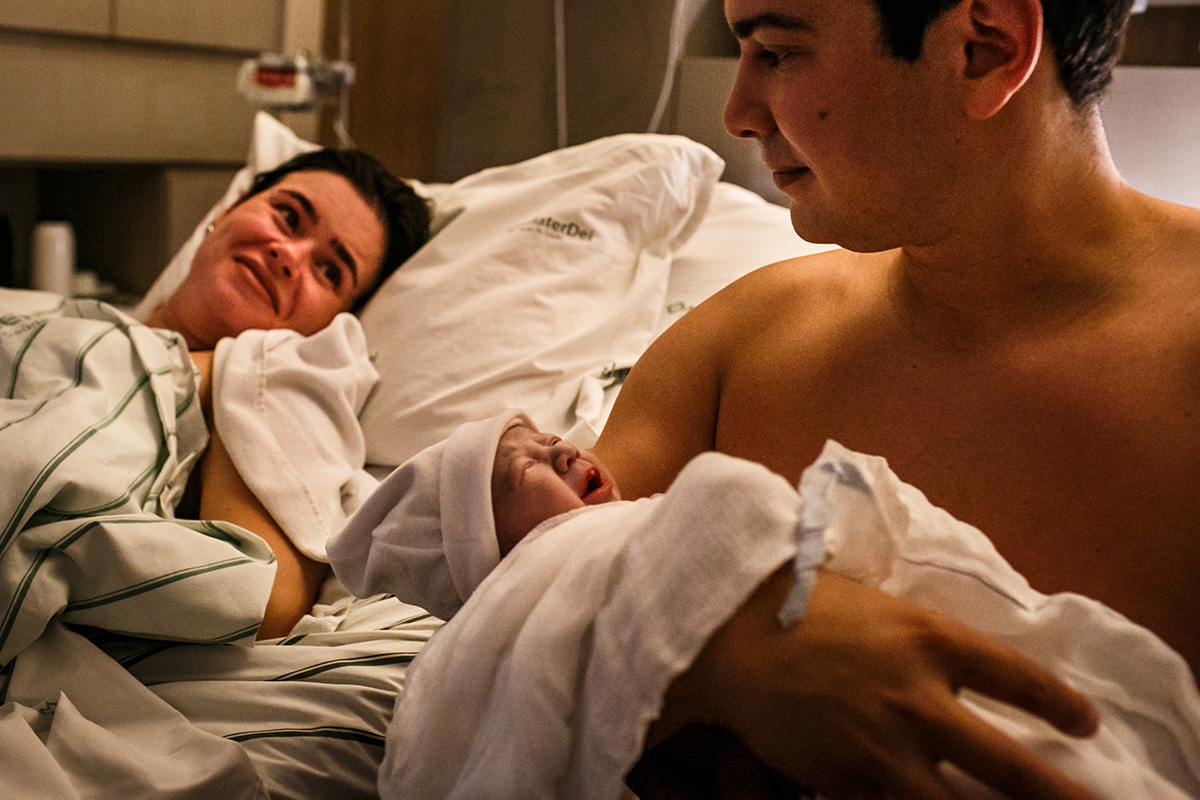 Nos primeiros minutos após o nascimento, Lívia teve um breve mal-estar. Rafael logo se prontificou para fazer o contato pele a pele com o filho até que a Lívia se recuperasse. Em pouco tempo ela já estava com ele nos braços, um momento de grande emoção!
