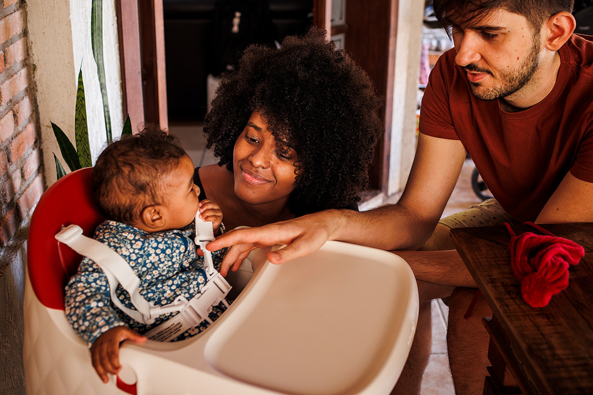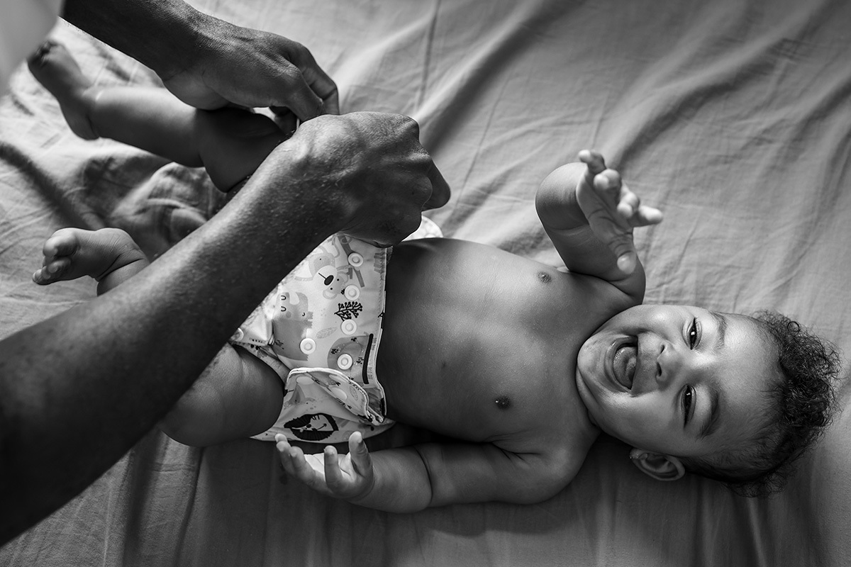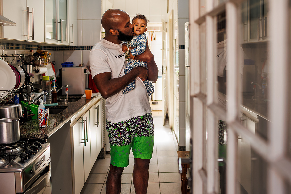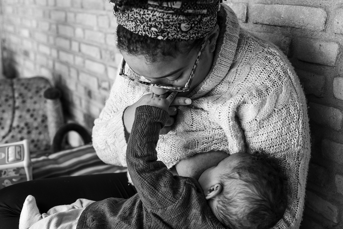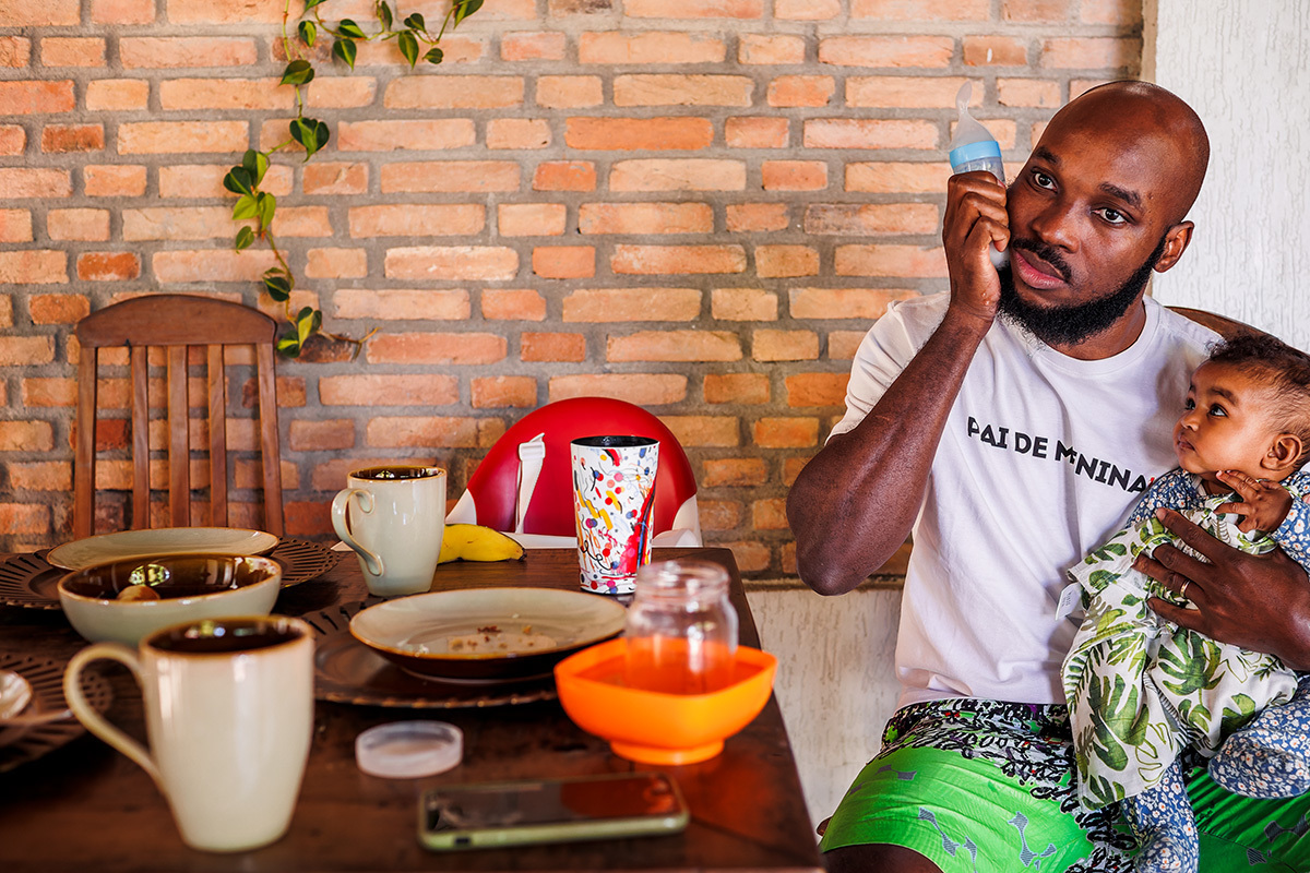 A May, que é obstetra, voltou a trabalhar quando a Odara estava prestes a completar 2 meses. Para que a Odara permanecesse com o aleitamento exclusivo até os 6 meses ela retirava o seu leite e deixava estocado para que o Mathias pudesse dar a Odara na colherzinha nos dias em que trabalhava. Esse empenho dos dois foi muito importante e deu super certo! Por isso, a May fez questão que eu registrasse o Mathias, pelo menos uma vez, dando a Odara o leite materno na colherzinha. Apesar de estar presente e poder ali, naquele instante amamentar, ela deixou que o Mathias o fizesse porque queria muito ter a lembrança desse ato de amor que lhes foi tão essencial.