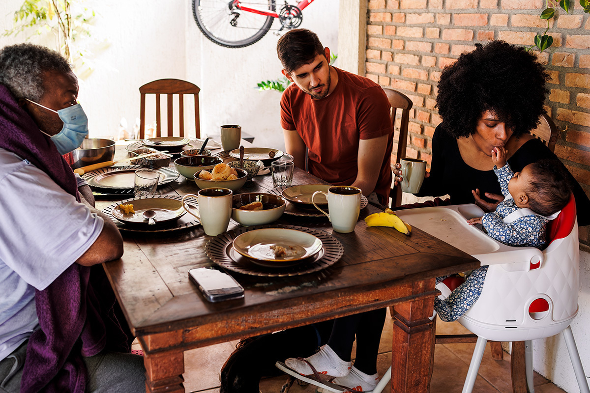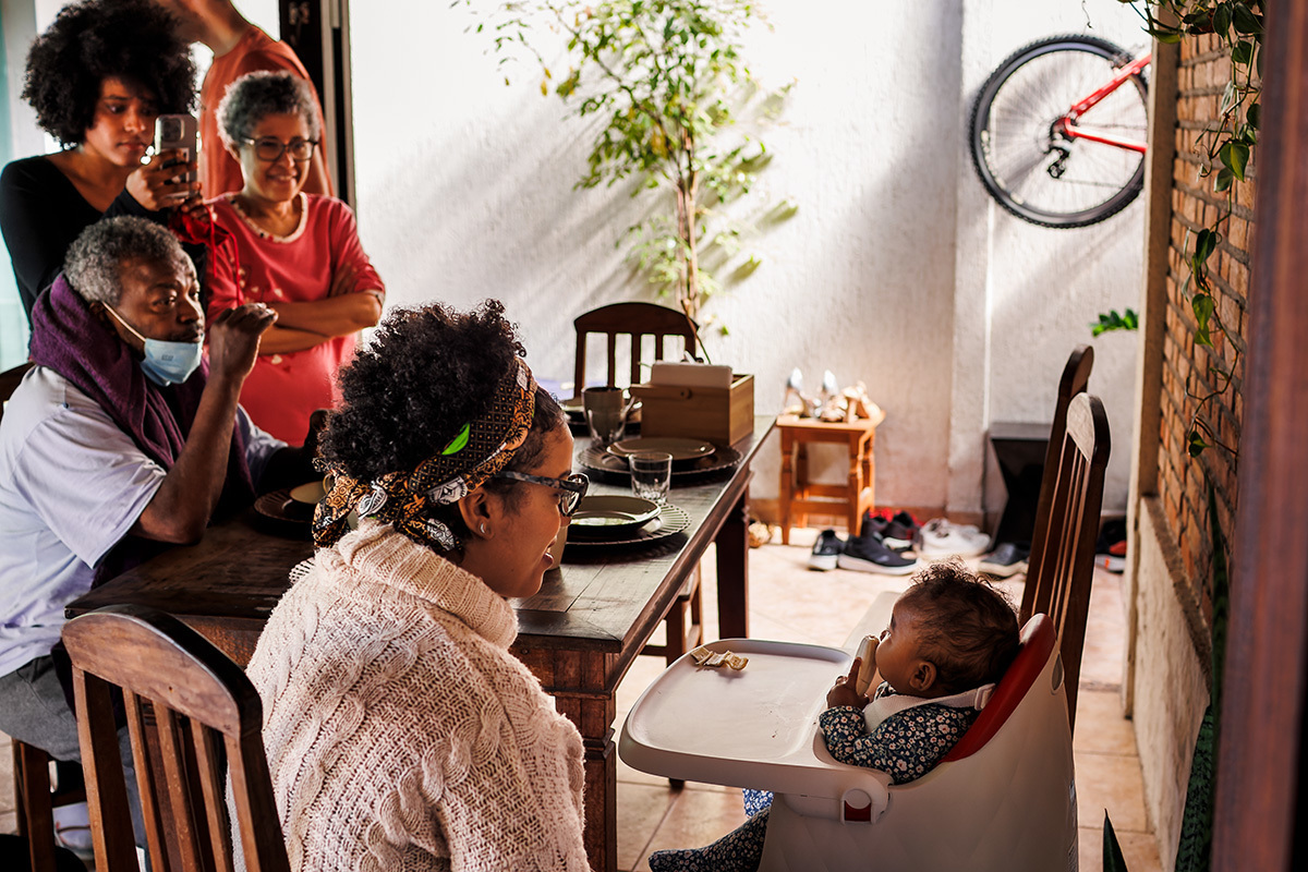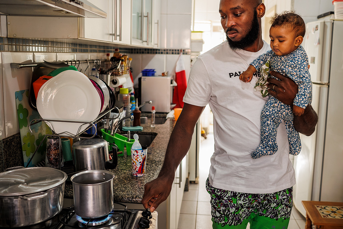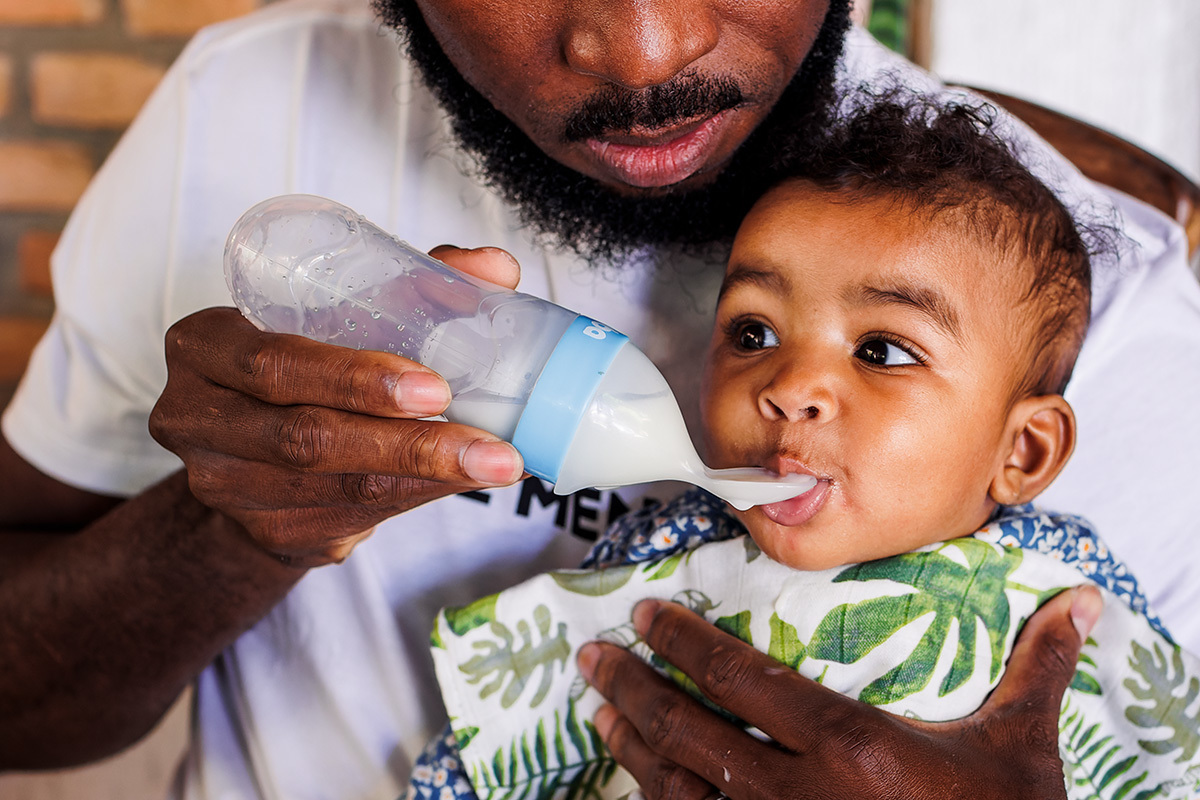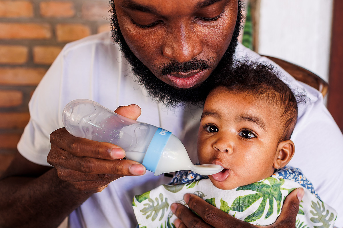 A May, que é obstetra, voltou a trabalhar quando a Odara estava prestes a completar 2 meses. Para que a Odara permanecesse com o aleitamento exclusivo até os 6 meses ela retirava o seu leite e deixava estocado para que o Mathias pudesse dar a Odara na colherzinha nos dias em que trabalhava. Esse empenho dos dois foi muito importante e deu super certo! Por isso, a May fez questão que eu registrasse o Mathias, pelo menos uma vez, dando a Odara o leite materno na colherzinha. Apesar de estar presente e poder ali, naquele instante amamentar, ela deixou que o Mathias o fizesse porque queria muito ter a lembrança desse ato de amor que lhes foi tão essencial.