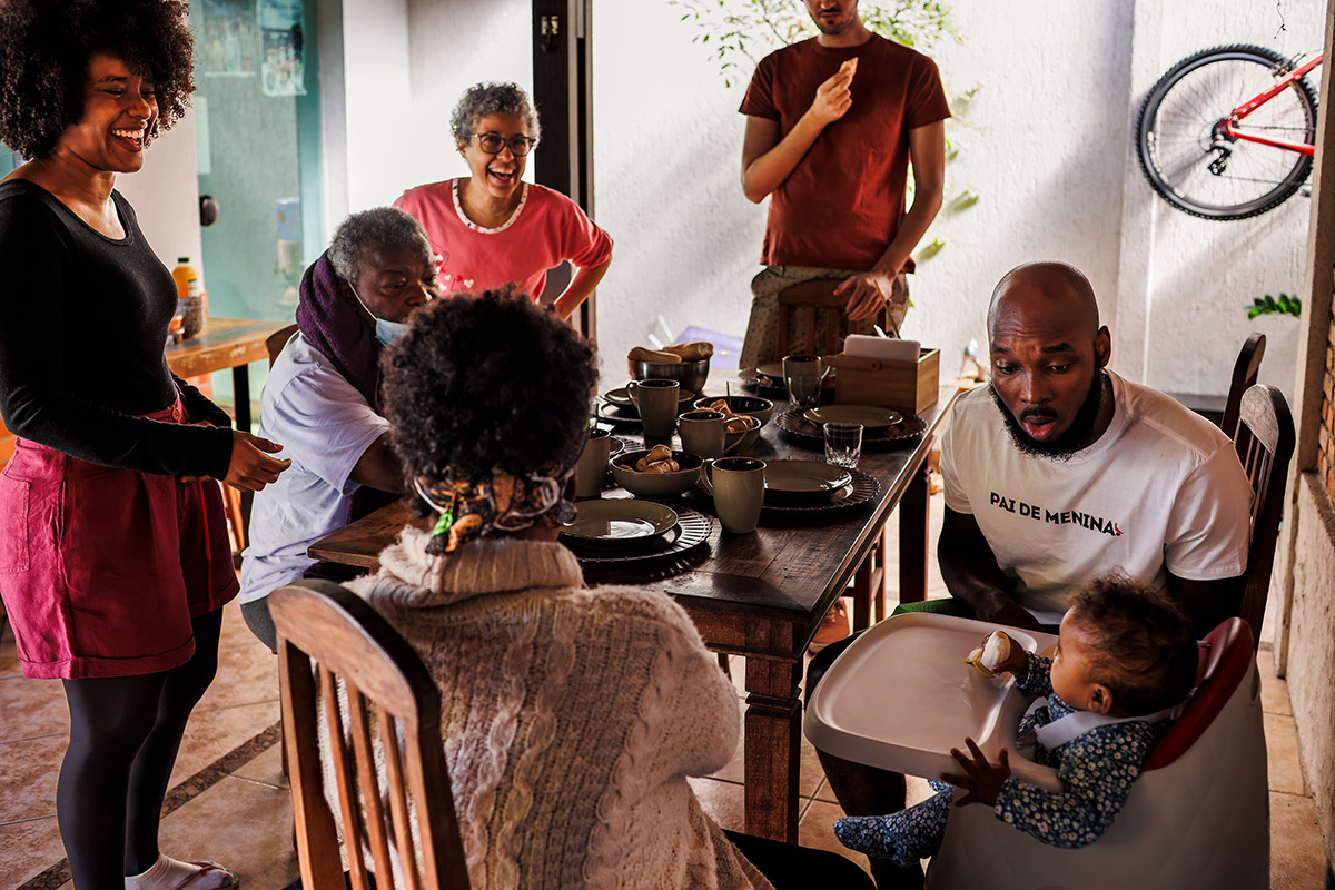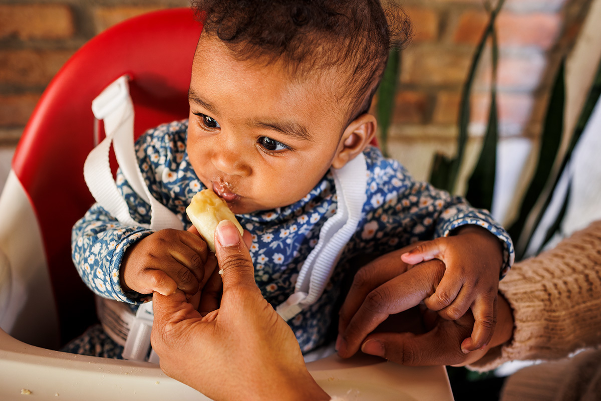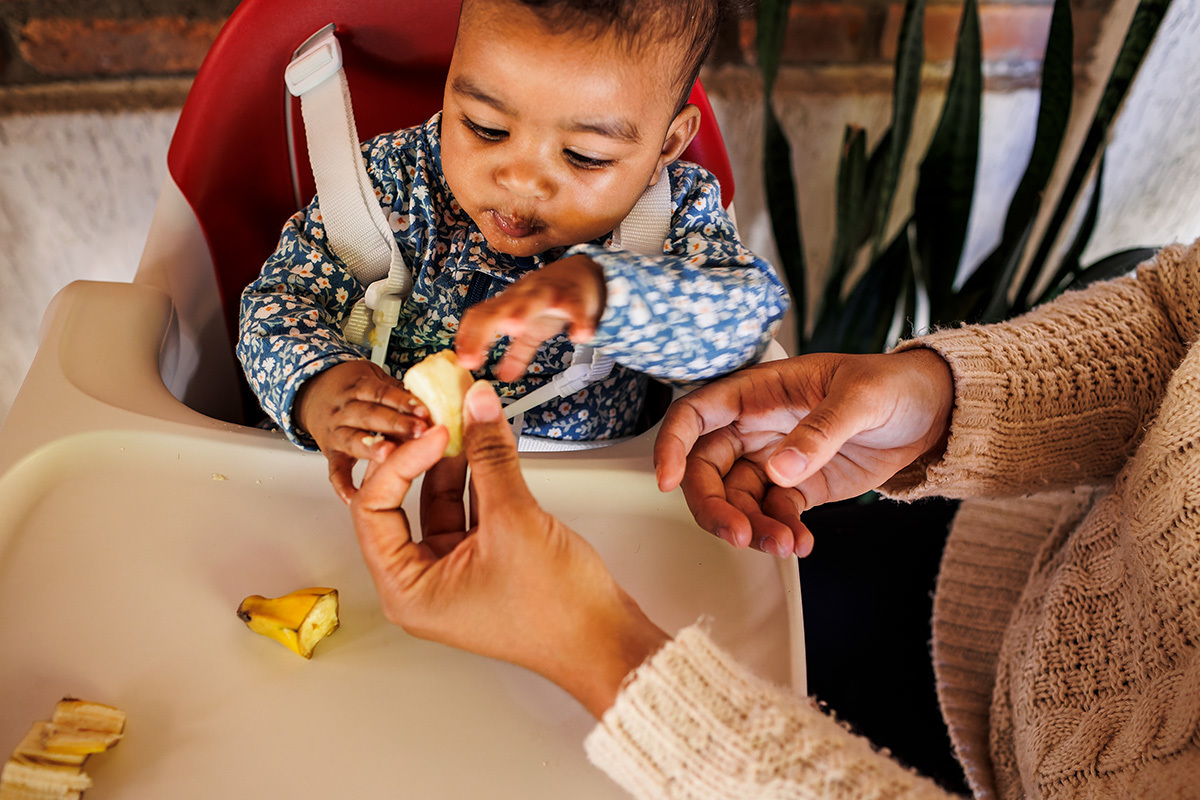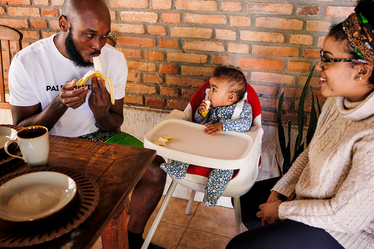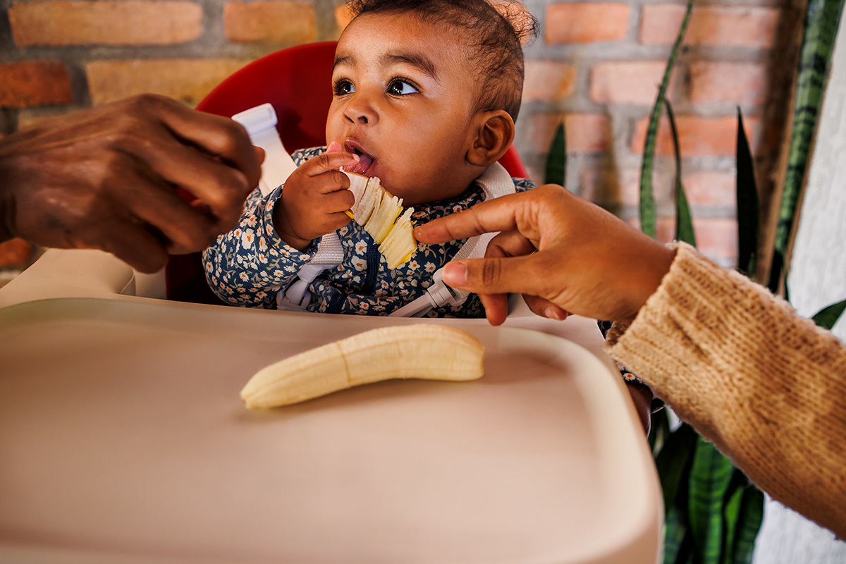 Nesse nosso novo encontro ela estava iniciando a introdução alimentar. Havia acabado de completar 6 meses de amamentação exclusiva e nesse dia ela experimentou pela primeira vez uma banana prata. A família inteira estava na expectativa de como seria sua reação. Primeiro se mostrou curiosa, depois fez uma caretinha, mas ao ver seu pai também comer, provou e gostou! Foi uma festa!