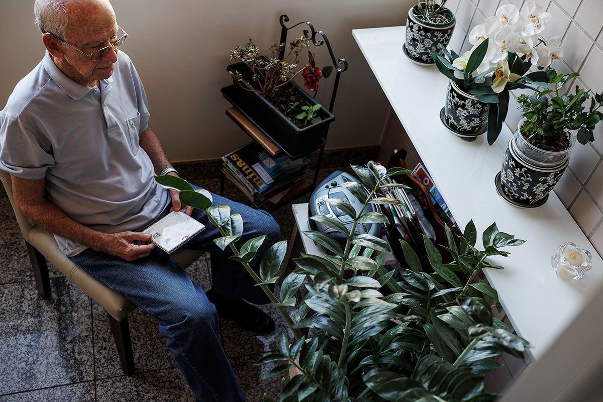 Outro dia fui à casa deles pela manhã de um domingo, horário que normalmente estão se preparando para ir à missa. Iria ficar pouco por lá pois sabia que iriam sair, mas levei a câmera para registrar um pouco do que fazem juntos neste horário.