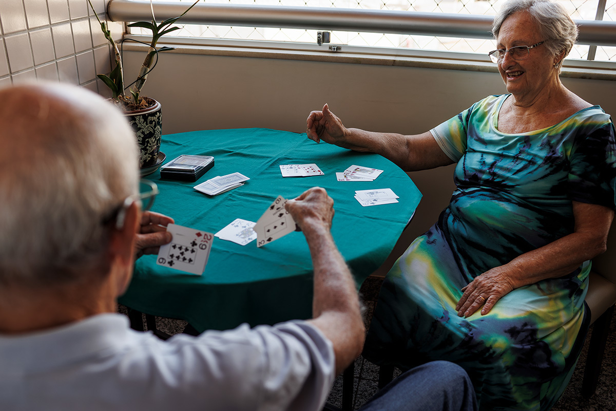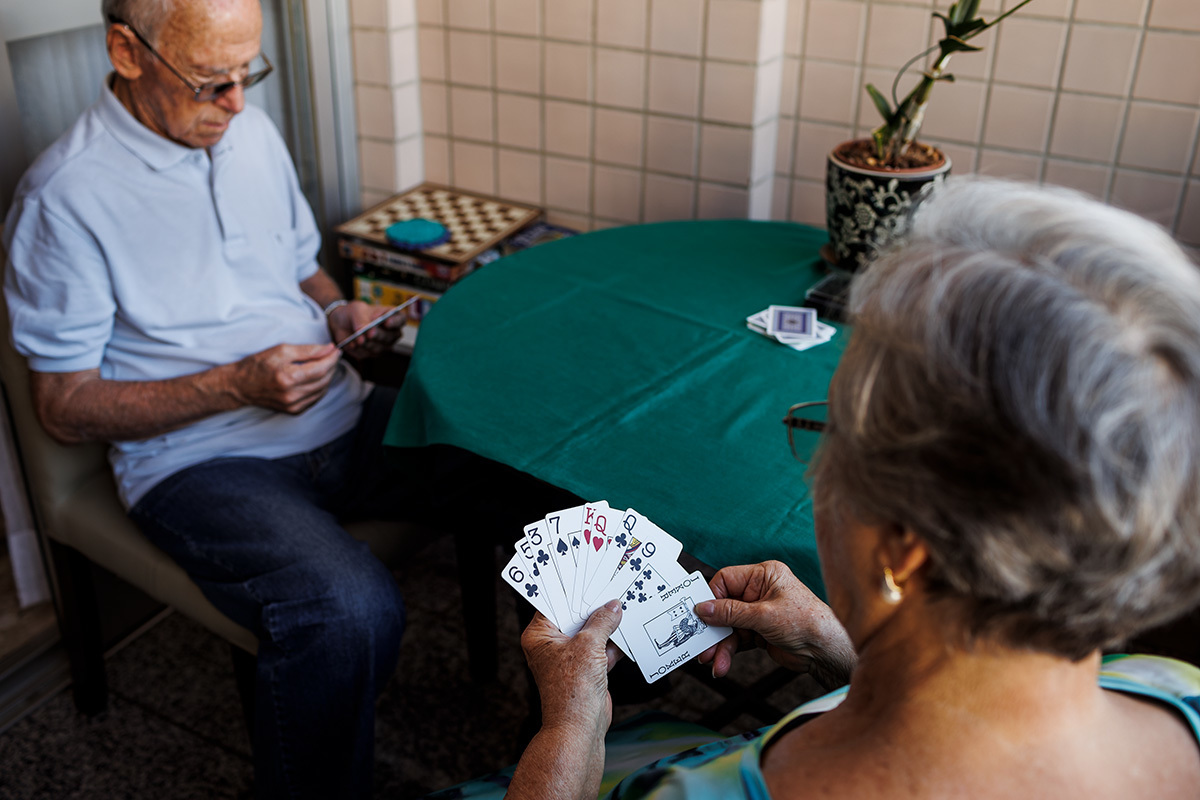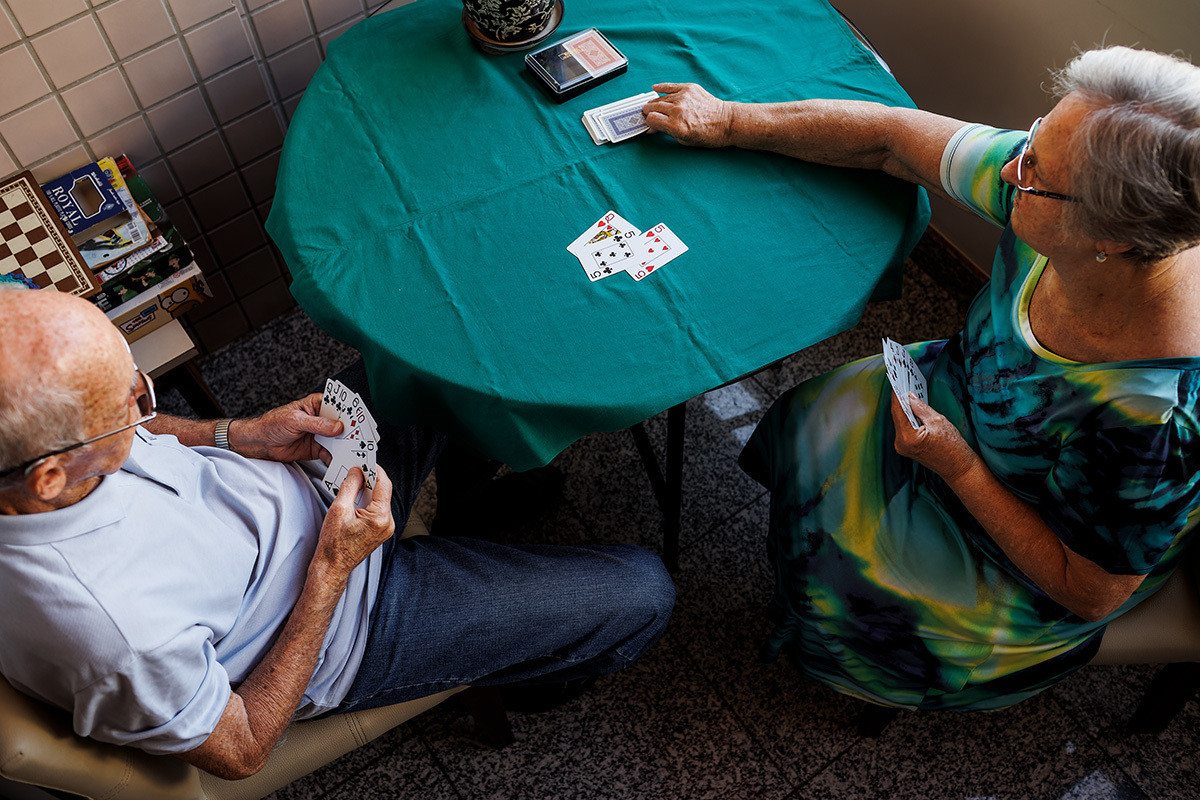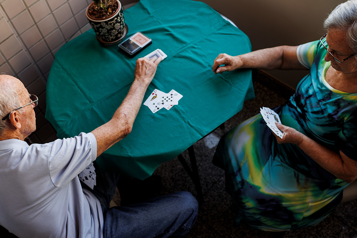 Pai já estava pronto e colocou uma música para ouvir. Dançou um pouquinho com a minha mãe, que não aguenta muito tempo devido a um problema de coluna. Ela foi se arrumar e ele ficou curtindo sua música e cantarolando. Logo ela voltou, ouviram juntos mais algumas canções e foram jogar trinca. Meu pai adora esse jogo. É simples, rápido e mesmo em pouco tempo fazem várias rodadas. Ganha quem baixar primeiro todas as cartas da mão por mais vezes.