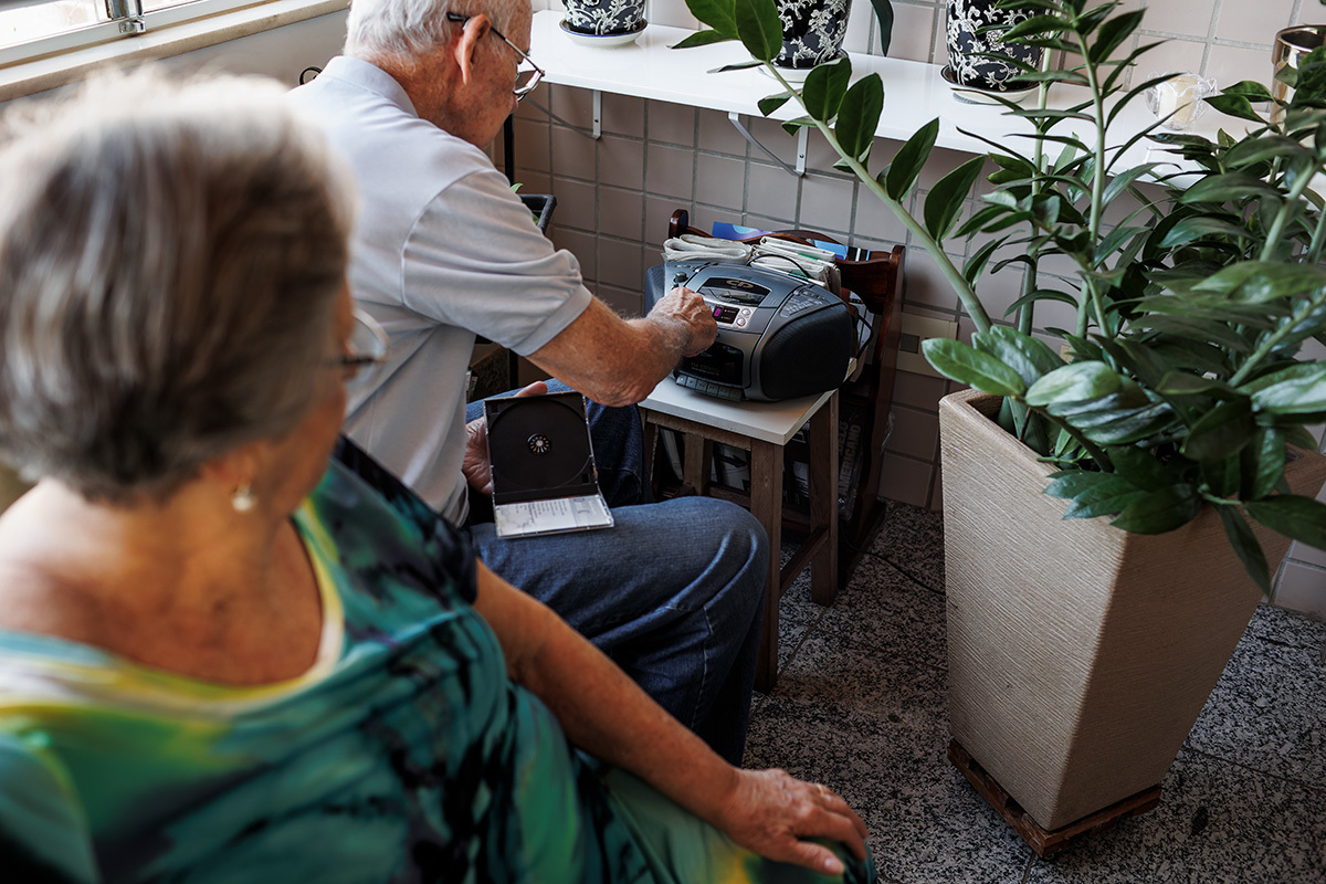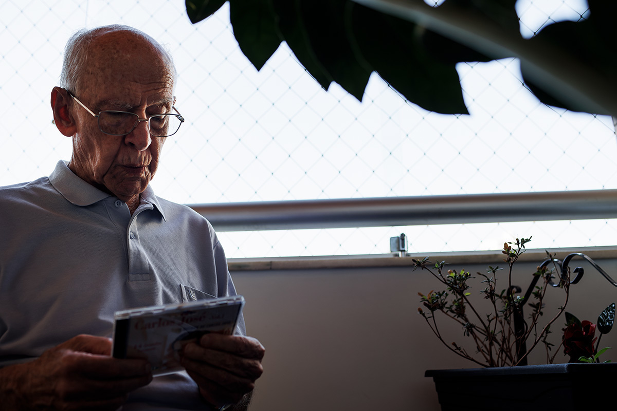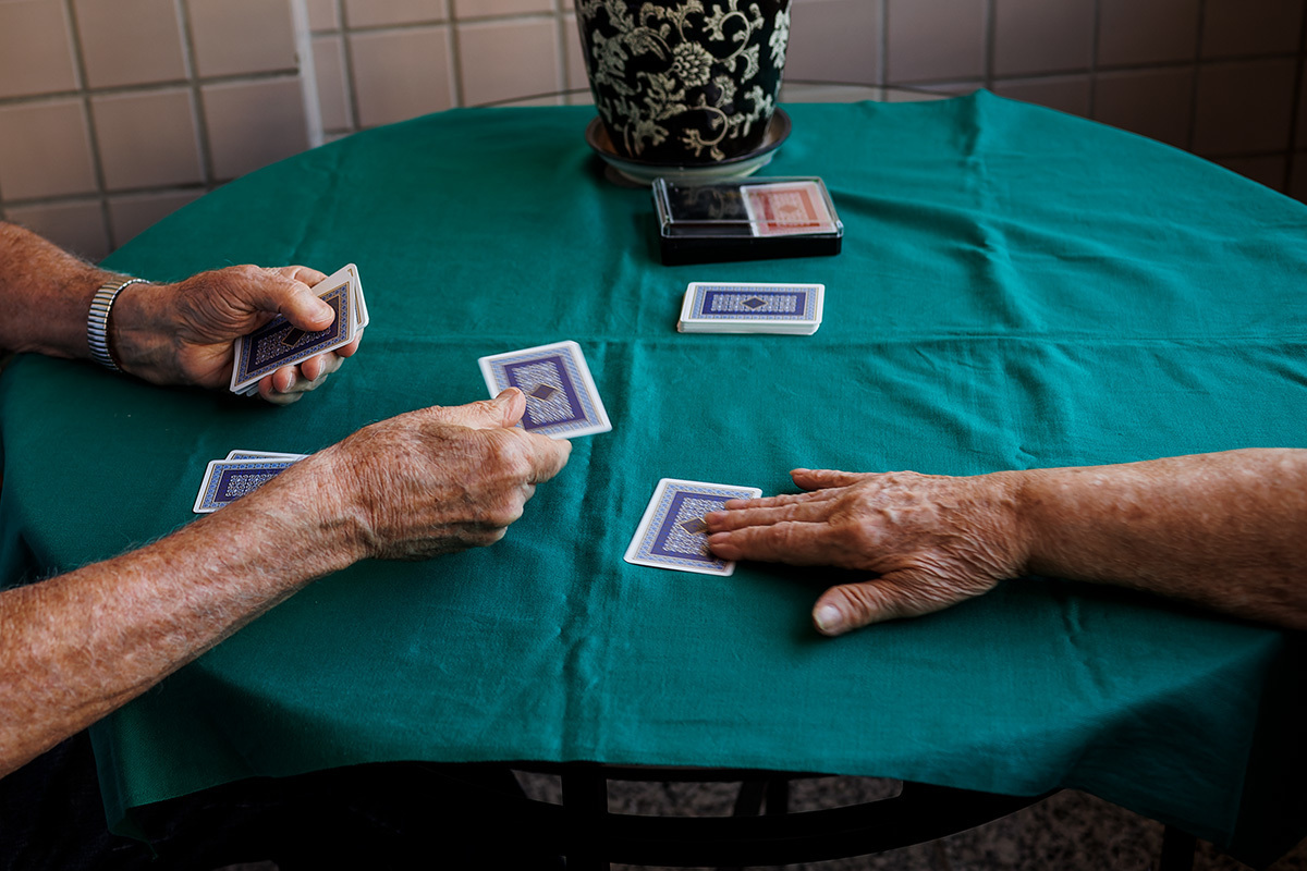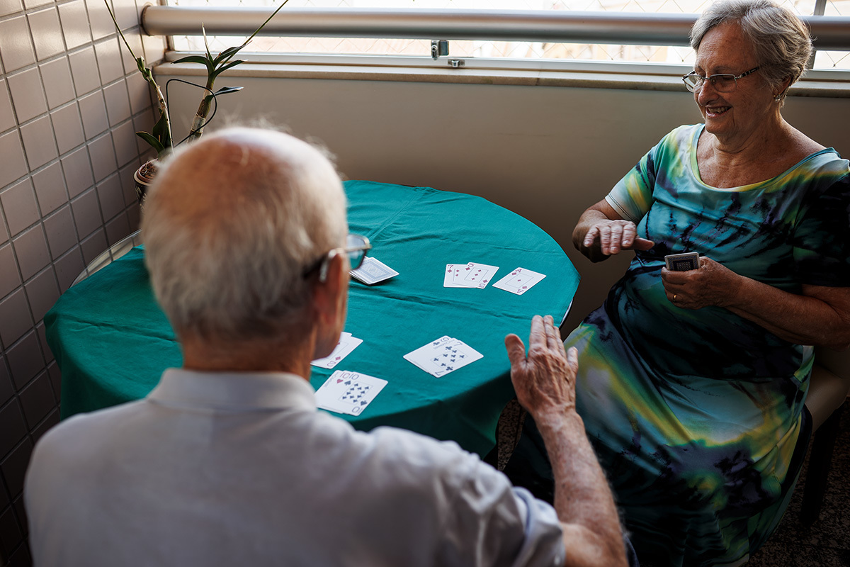 Pai já estava pronto e colocou uma música para ouvir. Dançou um pouquinho com a minha mãe, que não aguenta muito tempo devido a um problema de coluna. Ela foi se arrumar e ele ficou curtindo sua música e cantarolando. Logo ela voltou, ouviram juntos mais algumas canções e foram jogar trinca. Meu pai adora esse jogo. É simples, rápido e mesmo em pouco tempo fazem várias rodadas. Ganha quem baixar primeiro todas as cartas da mão por mais vezes.