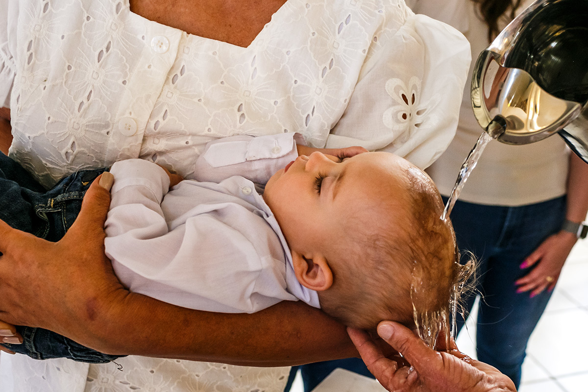 bebê acordando tranquilo durante a sua cerimônia de batismo