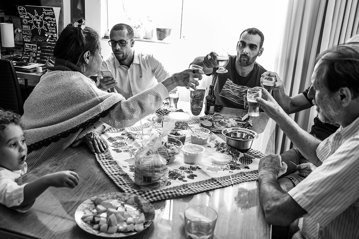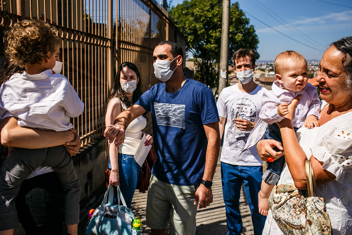 família comemorando o batizado do caçula em festa sem pompa, mas com muito amor