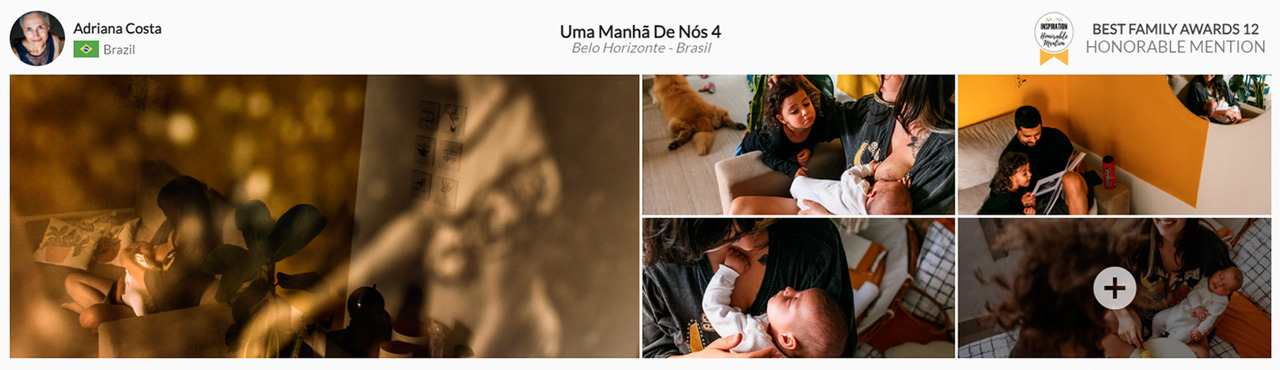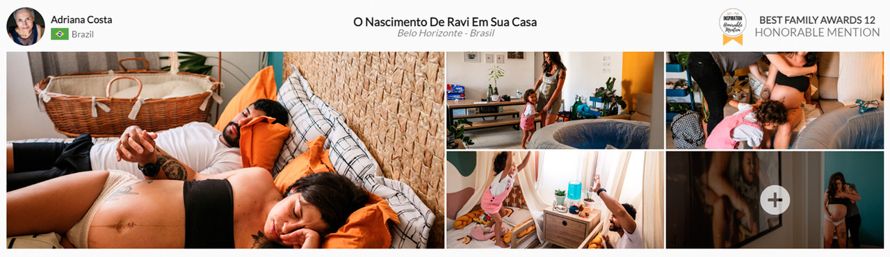 Tive também mais 2 HISTÓRIAS com MENÇÃO HONROSA. Duas histórias de uma mesma família pela qual tenho um imenso carinho! A do dia do nascimento do Ravi, uma vivência linda de uma mulher sendo acolhida por seu marido e sua pequena filha para o recebimento amoroso desse novo membro da família. Um parto que tive a honra de ser escolhida para acompanhar logo que o casal soube da gravidez! E, depois, a de um dia gostoso dessas 4 pessoinhas lindas e queridas já desfrutando do convívio prazeroso entre elas!