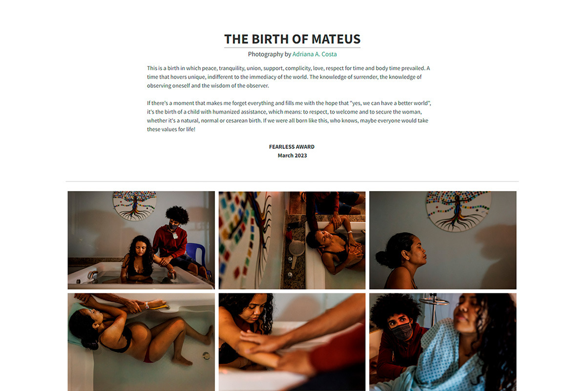 ... pouco depois, pela conceituada Fearless Family na categoria Photo Story Award que contempla "histórias contadas em 15 imagens".